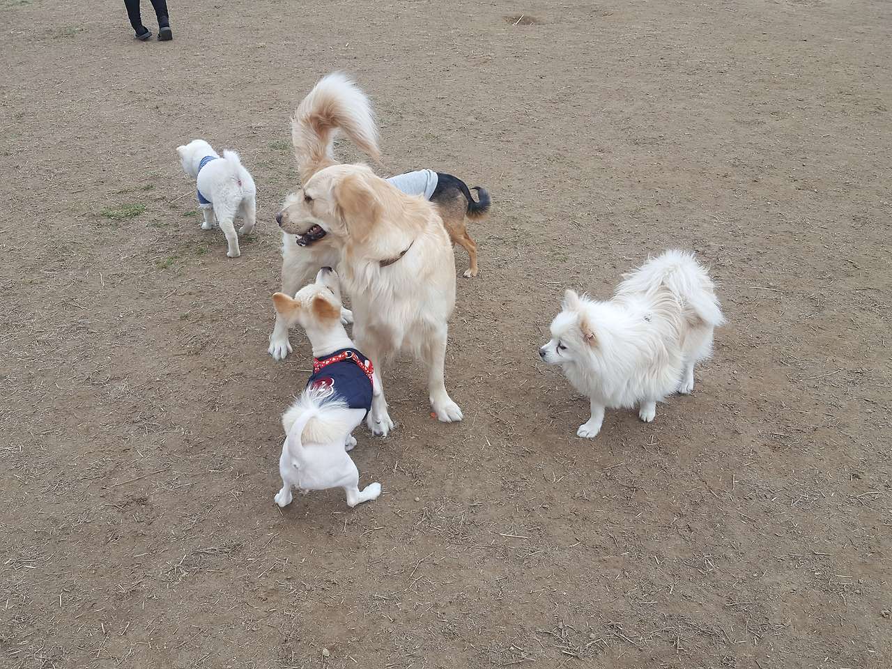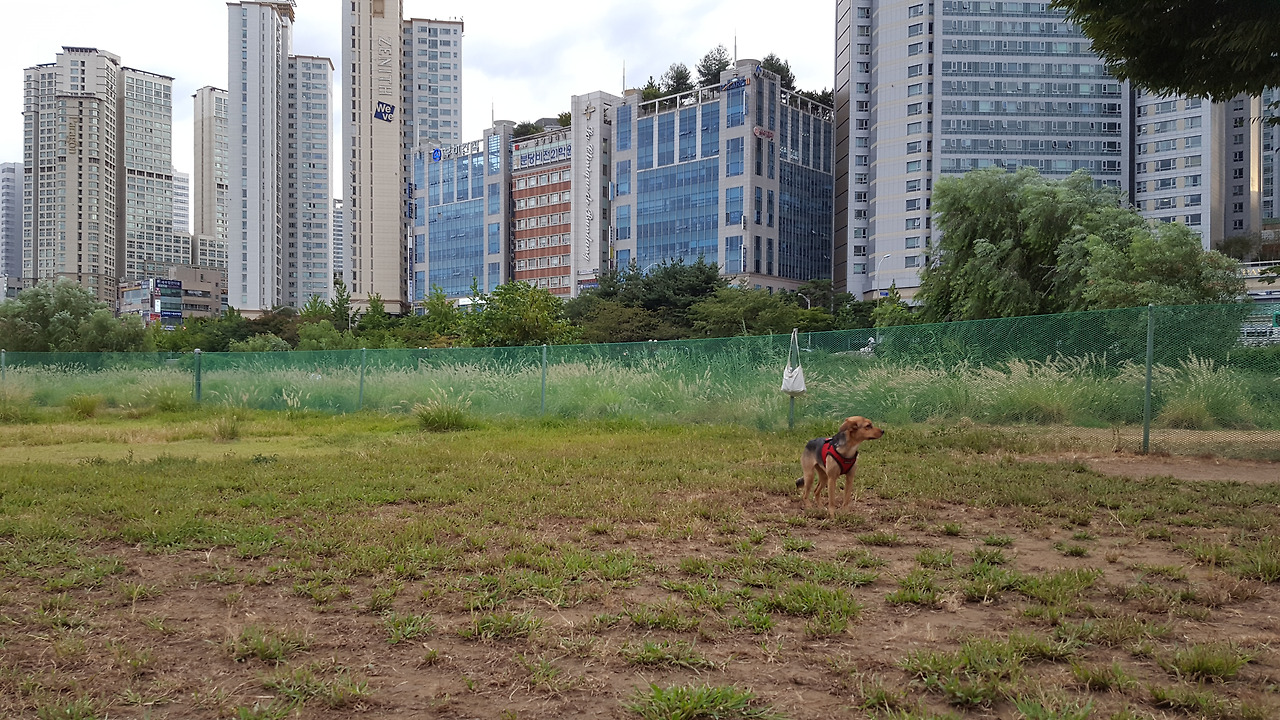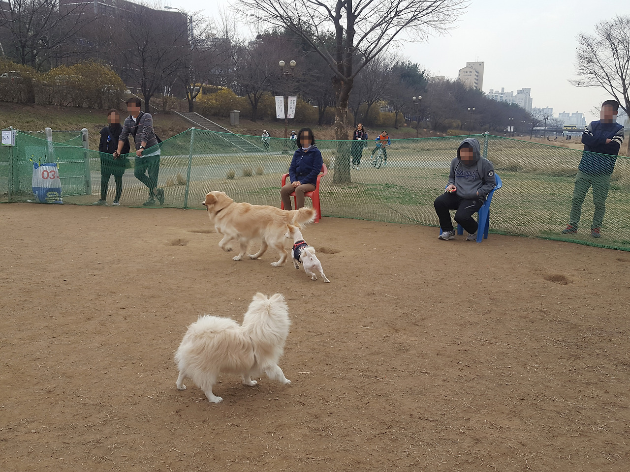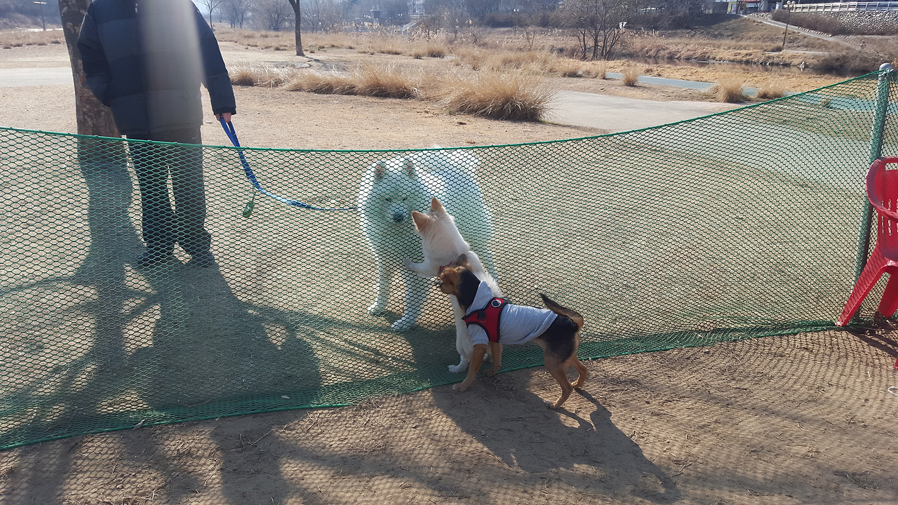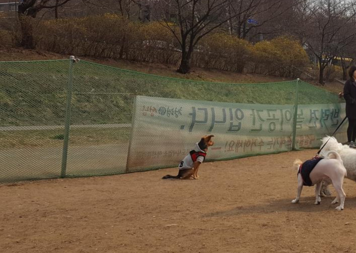 주로 아파트 단지만 산책하고 돌아오지만, 날씨가 좋은 주말에는 종종 남편과 15분 정도 거리에 있는 강아지 놀이터에 방문하기도 한다. 보통 강아지 놀이터라 하면 다른 개들과 킁킁 냄새를 맡으며 인사도 하고, 신나게 뛰어다니며 잡기 놀이를 하는 모습을 상상하겠지만 우리 집 개들에게는 그런 모습을 전혀 기대할 수 없다.