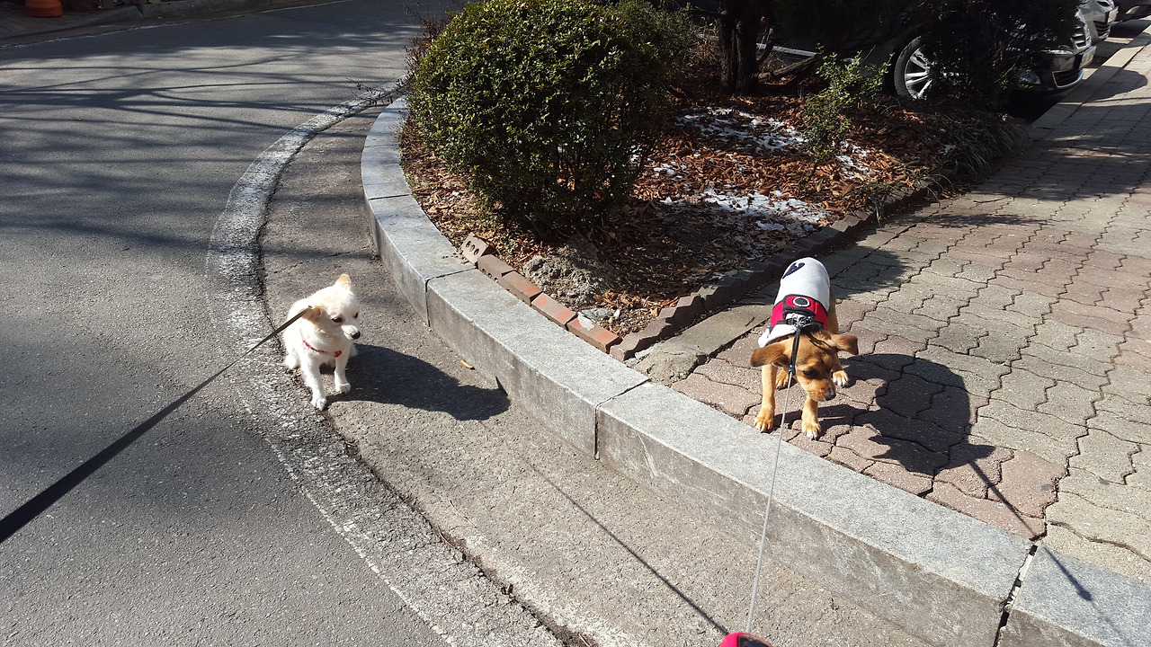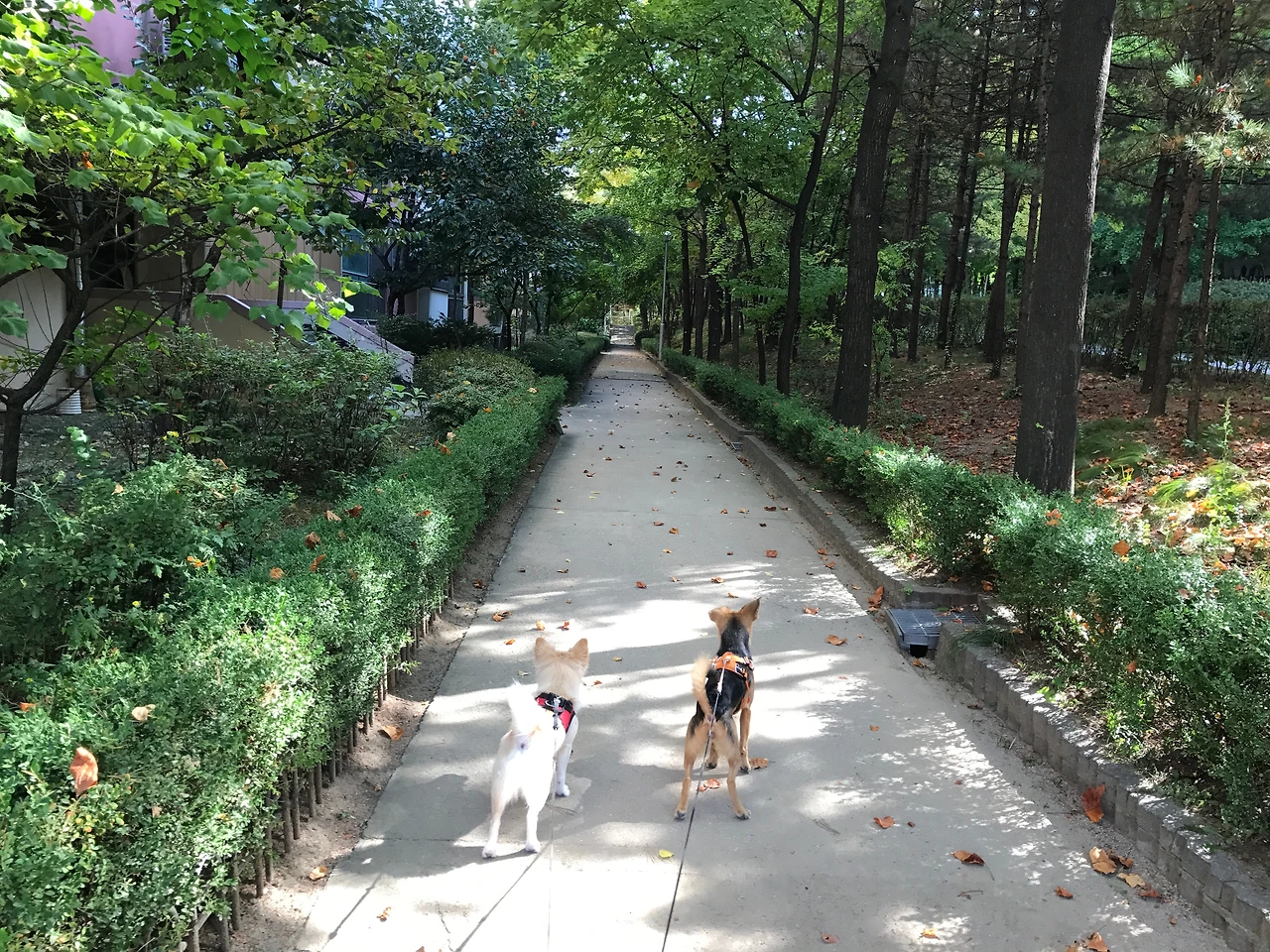 이렇게 몇 번의 강아지 놀이터 방문을 해보니, 보리에게도 콩이에게도 오히려 스트레스가 되는 것 같아 이젠 동네 산책만 다닌다. '새로운 장소에 가서 개 친구들을 만나면 좋아하겠지'라는 생각은 오히려 내 욕심이나 만족이었던 것 같다.
