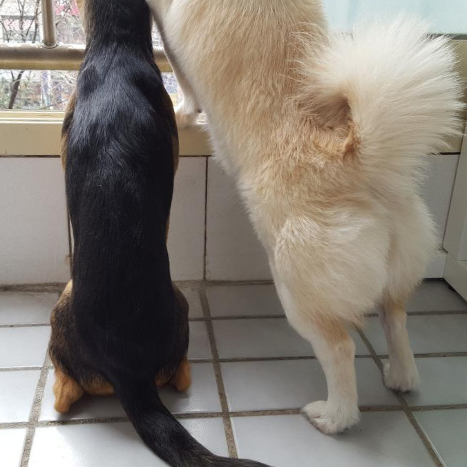 거창하고 구구절절 길게 써놓았지만 사실 개 키우는 사람들에게는 몸에 밴 습관처럼 당연한 이야기를 써놓은 것일지도 모른다. 그리고 물론 저런 것 외에도 포기해야 할 것은 많다. 예를 들면 가장 갖고 싶은 1순위 가구인 패브릭 소파를 살 수 없고, 마음에 쏙 드는 러그를 발견하고도 "저건 우리 집에서 쓸 수 없어" 하면서 세차게 외면해야 한다는 것, 나와 남편이 좋아하는 까만 옷은 꼭 외출 직전에만 갈아입어야 하고, 개들과 외출할 때엔 털 묻은 티가 잘 나지 않는 회색이나 털이 잘 안 붙는 재질의 옷만 가능하다는 것 등..
