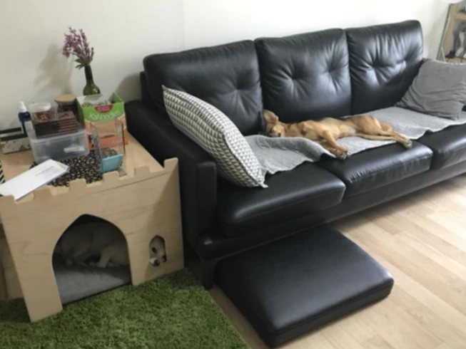 - 장점: 침대에 덜 드러눕게 되고, 대부분의 시간을 다 같이 오붓하게 거실에서 지내게 됨/거실용 옷에만 털이 붙기 때문에 털 제거 시간을 단축할 수 있음