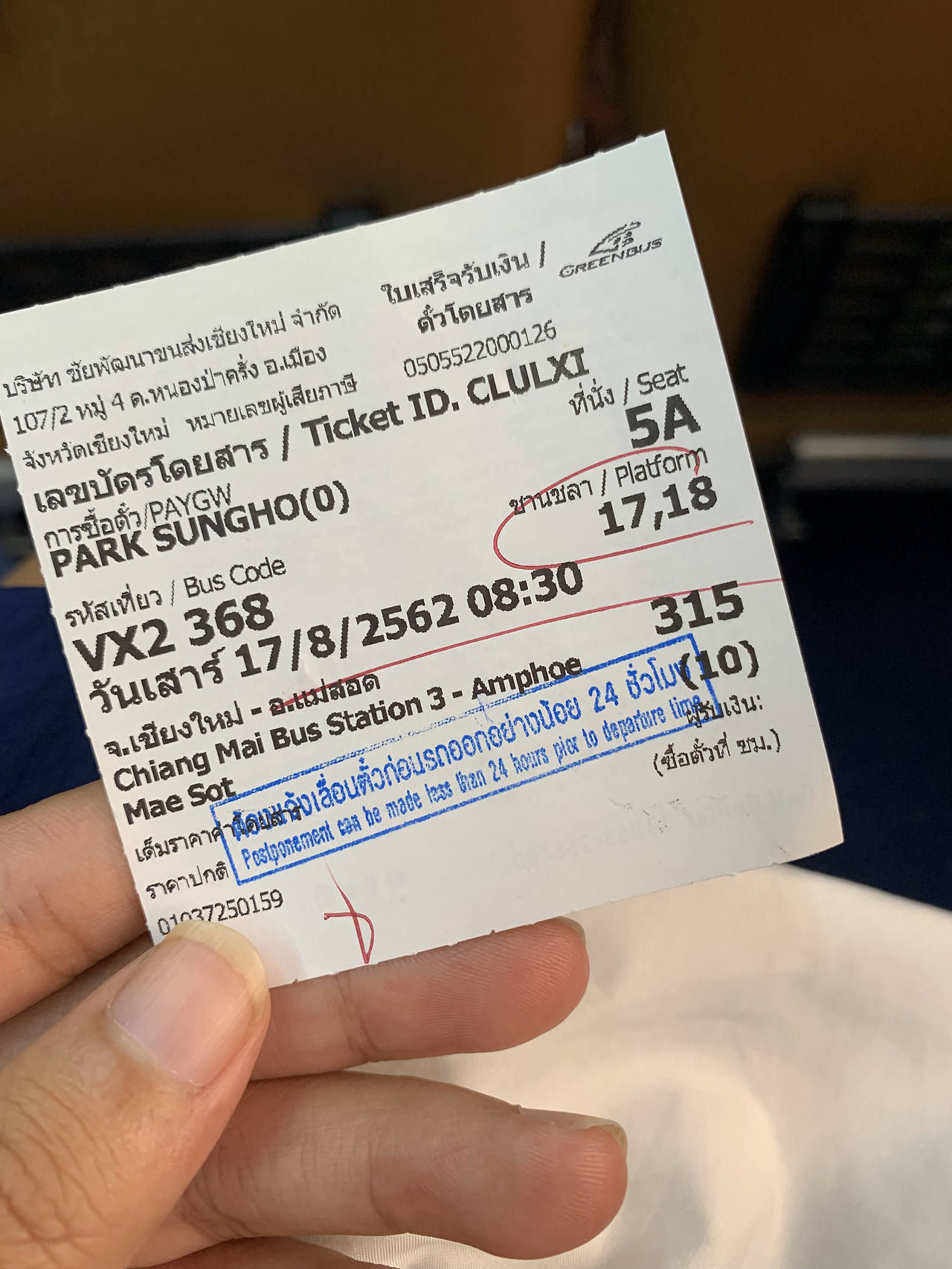 아침일찍 출발하는 매솟행 버스를 탑승해야