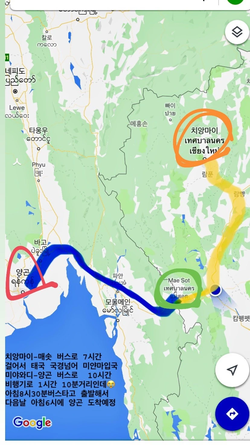 기사를 찾아보니 미야와디에서 양곤으로 가는 길이 홍수로 인해서