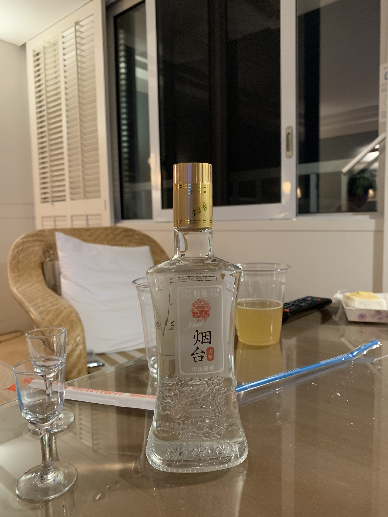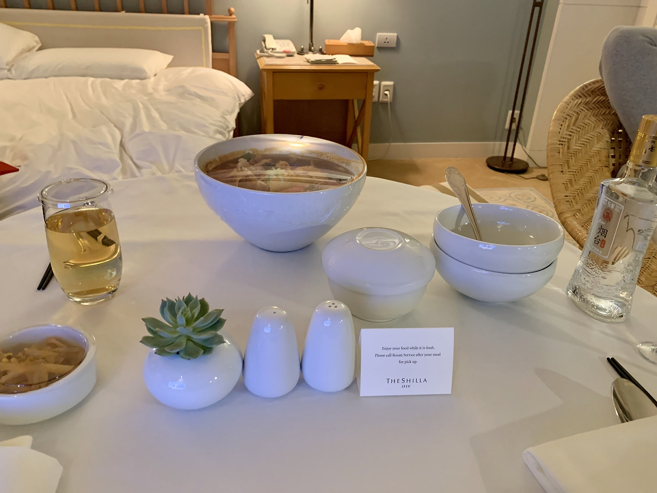 과자 정도만 사 왔더니 아쉬워서 룸서비스로 해물짬뽕과 연태고량주