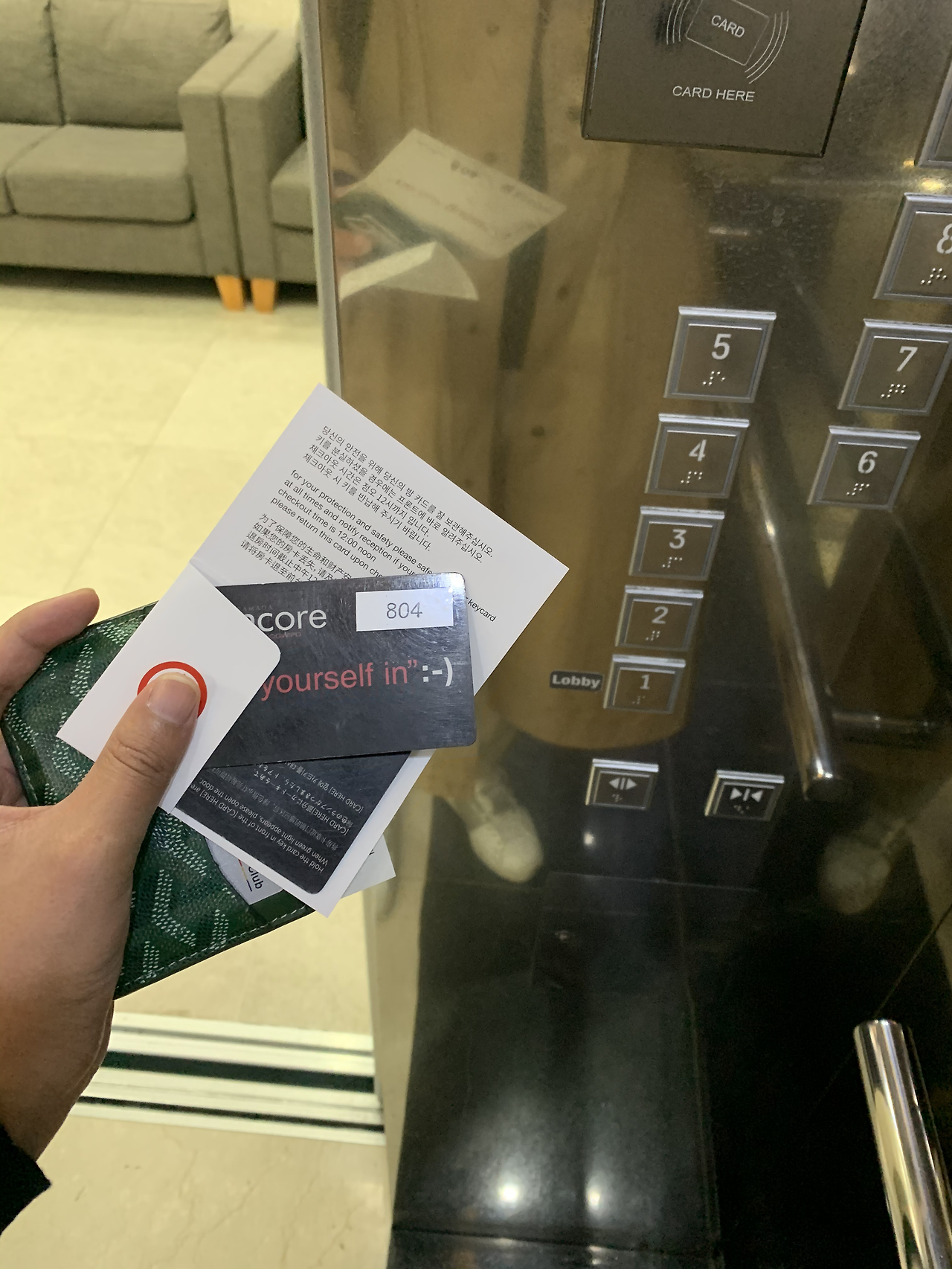 체크인을 하고 카드키를 센싱 하는데 문이 열리지 않더라고요.