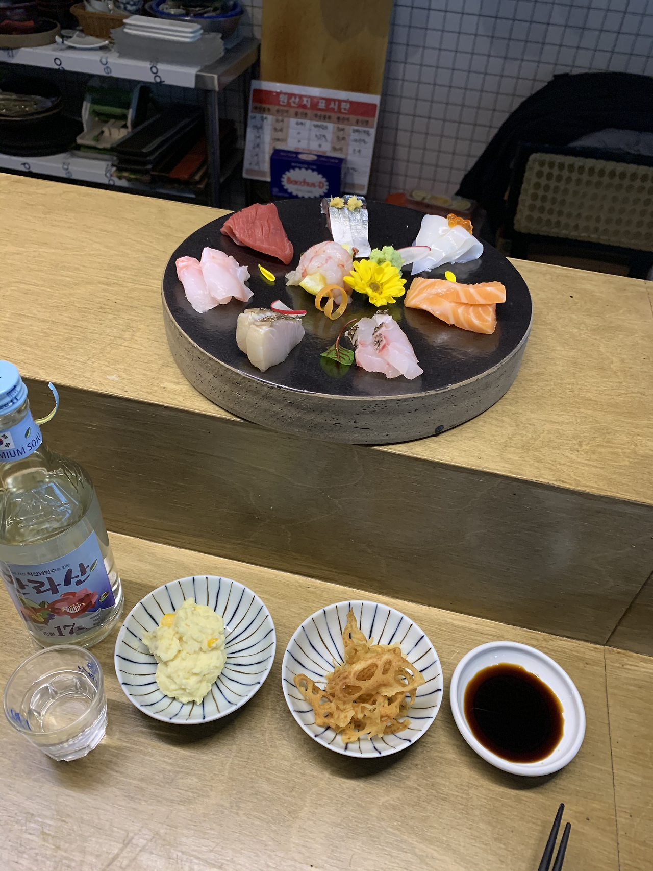 회도 맛있었고요 감자 샐러드도 부드럽고 하이볼도 맛나게 먹었어요.