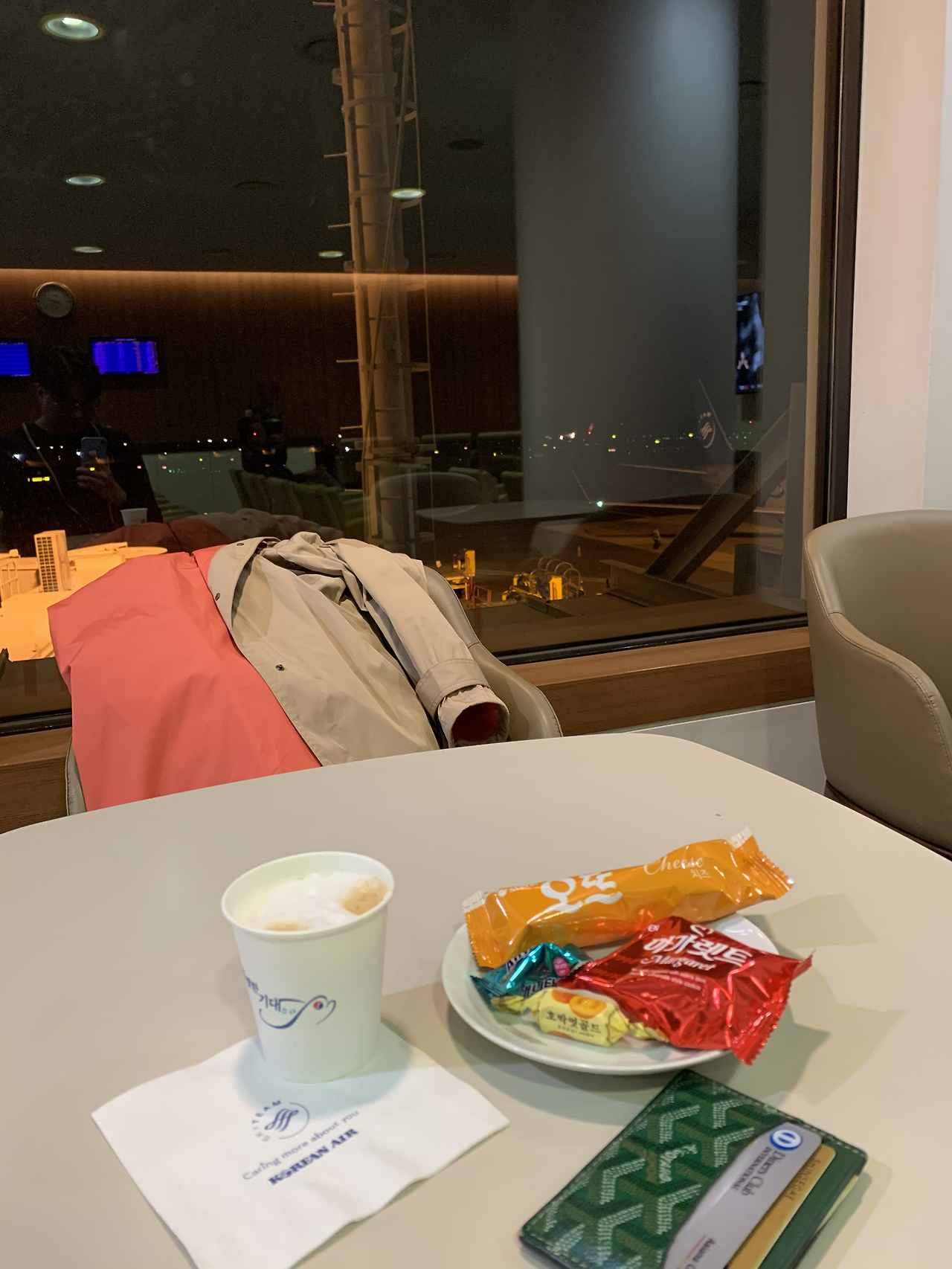 따뜻한 카푸치노 한잔과 과자 먹고 비행기 타러 갑니다.