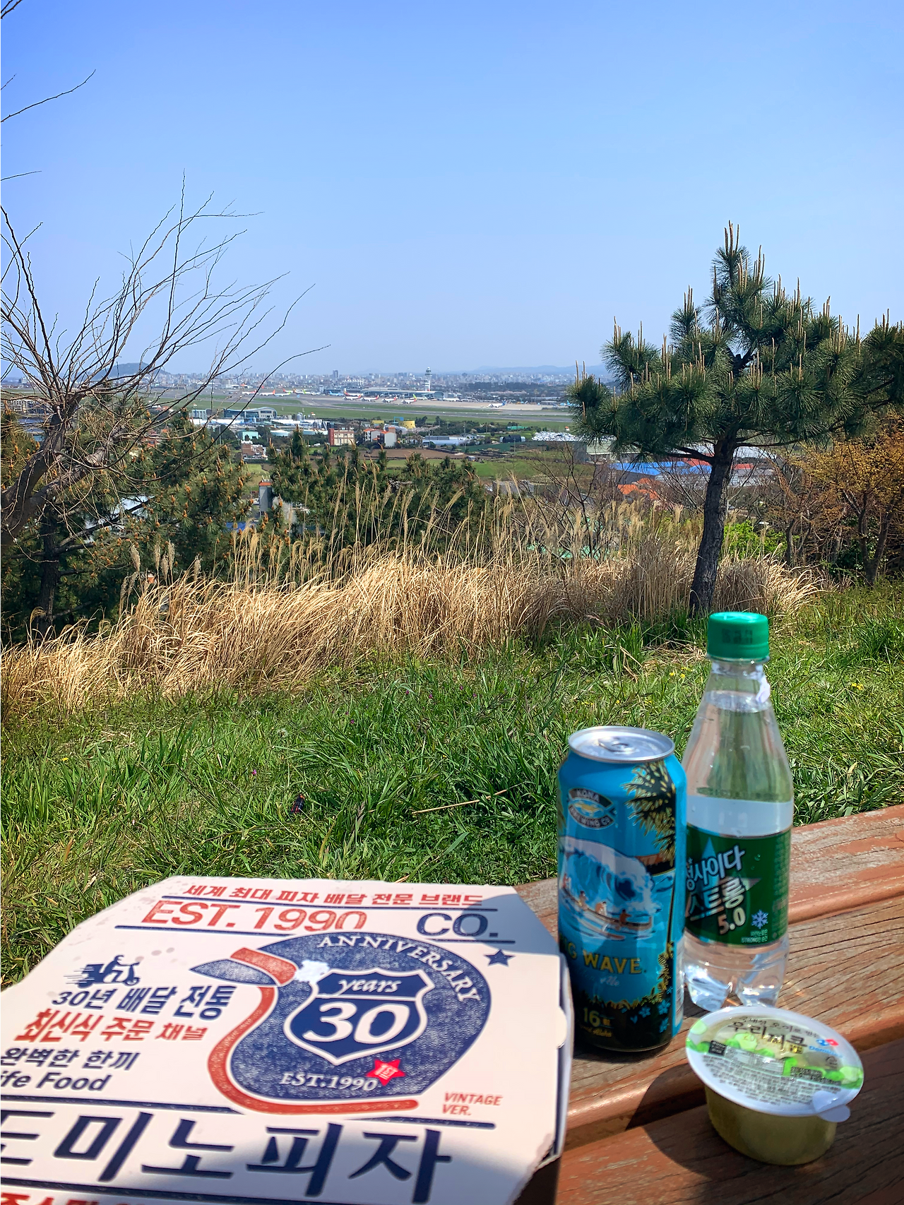 바다와 제주 국제공항이 한눈에 보이는 도두봉