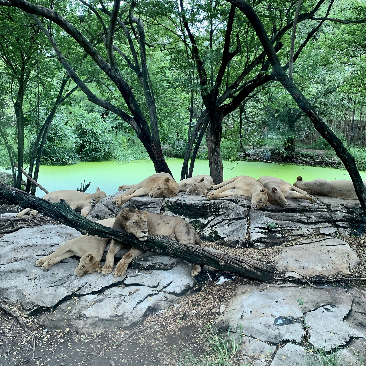 사파리 월드에서 버스에서 본 많은 기린들이 있는 곳