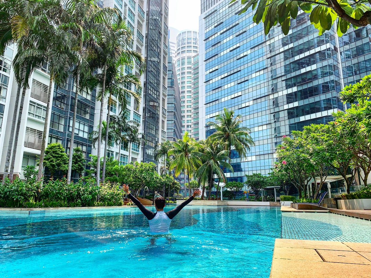 넓은 수영장 전세 낸 듯 혼자 호사롭게 놀았네요.