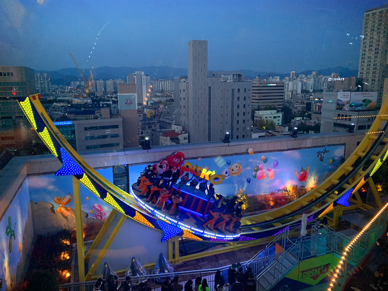 건물 밖으로 튕겨져 나갈 것 같아 더욱이 스릴이 있던 놀이기구