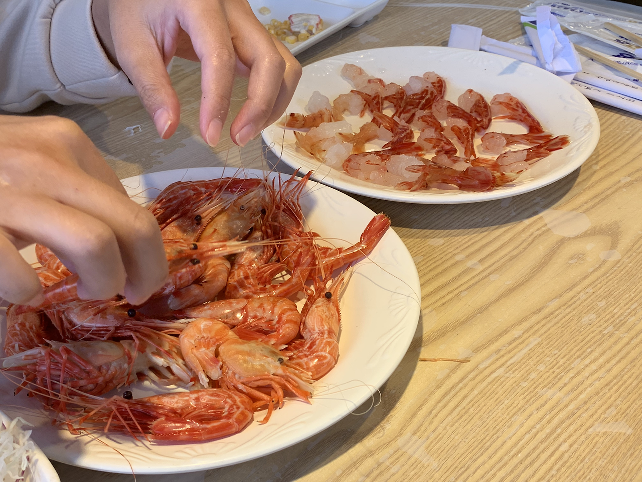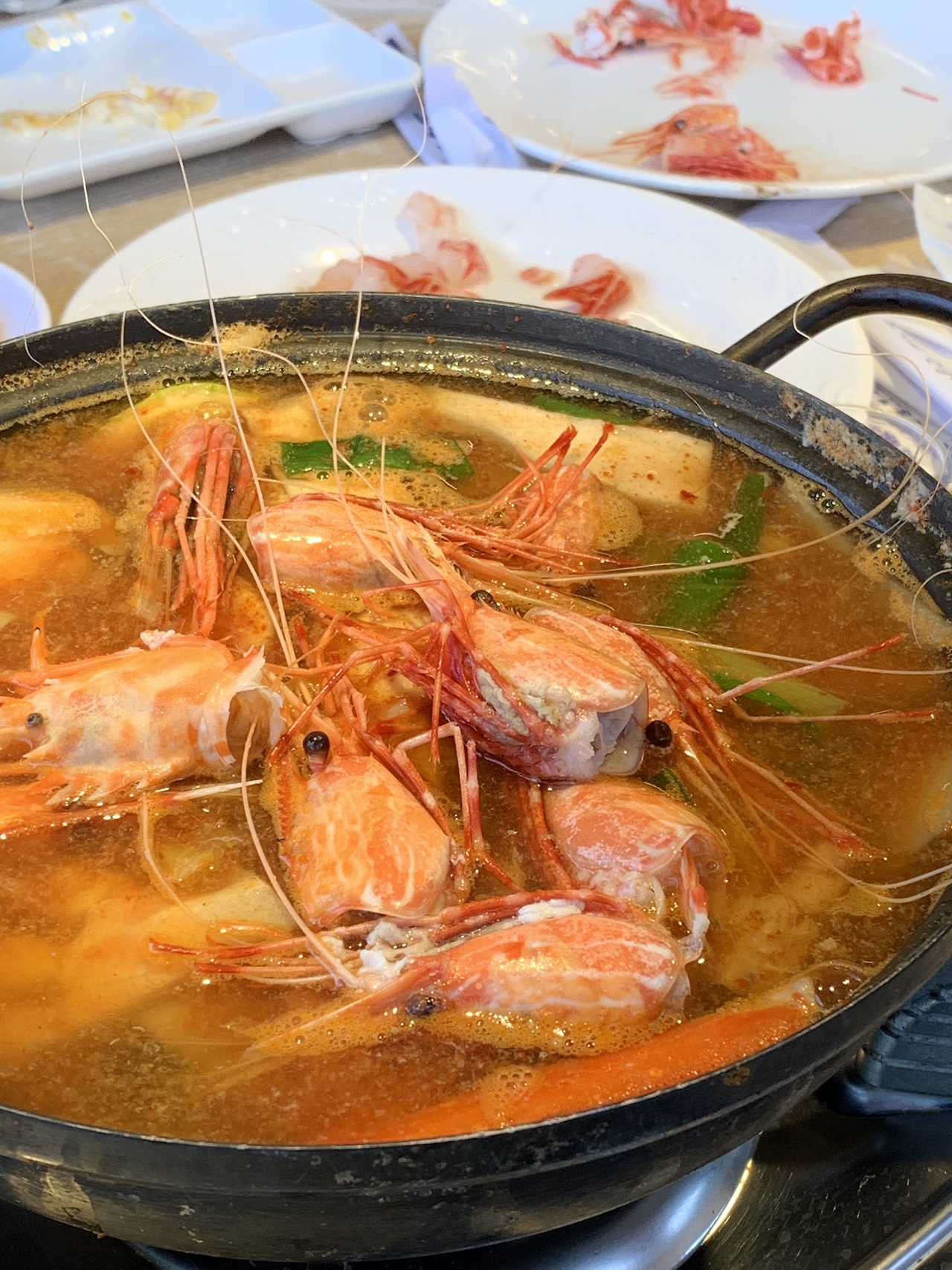 혼자 여행에서는 엄두도 못 냈던 비싼 새우를