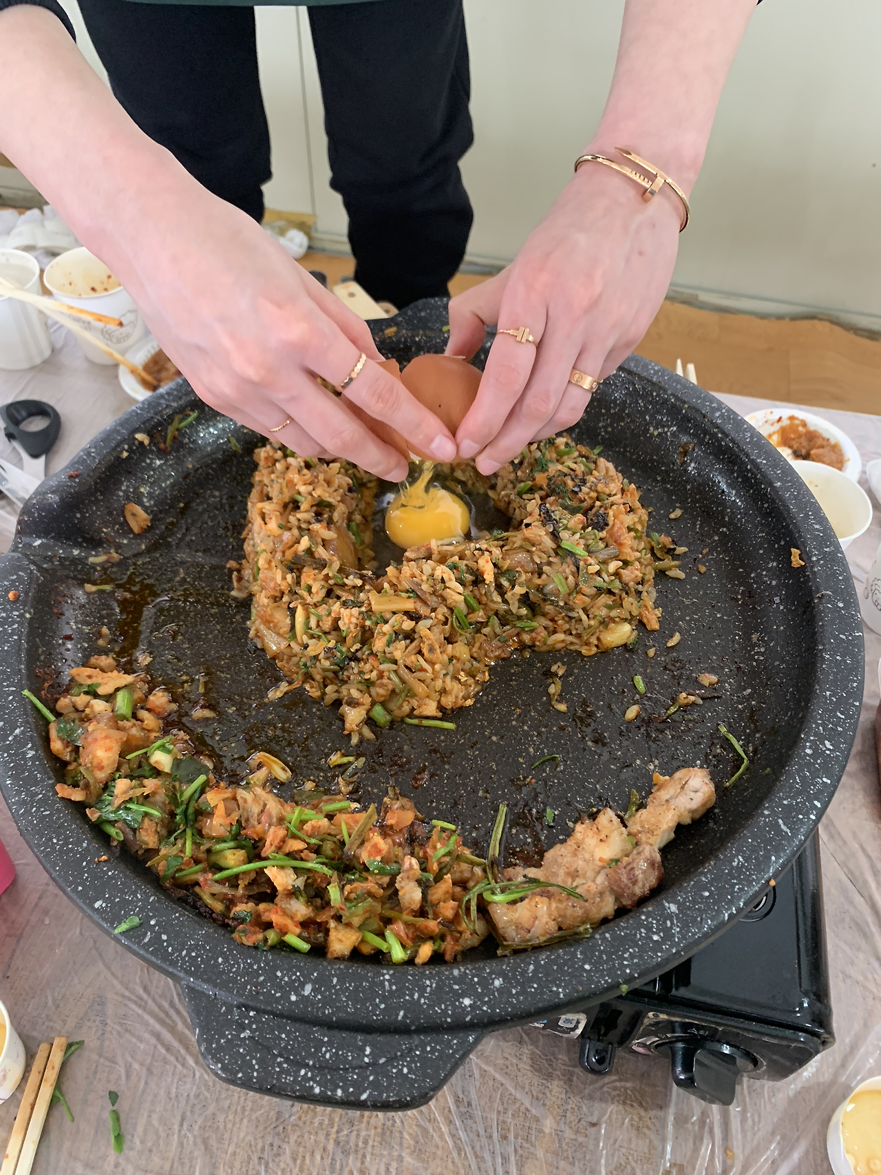 친구가 만들어주는 하트 볶음밥에 달걀까지 최고야.