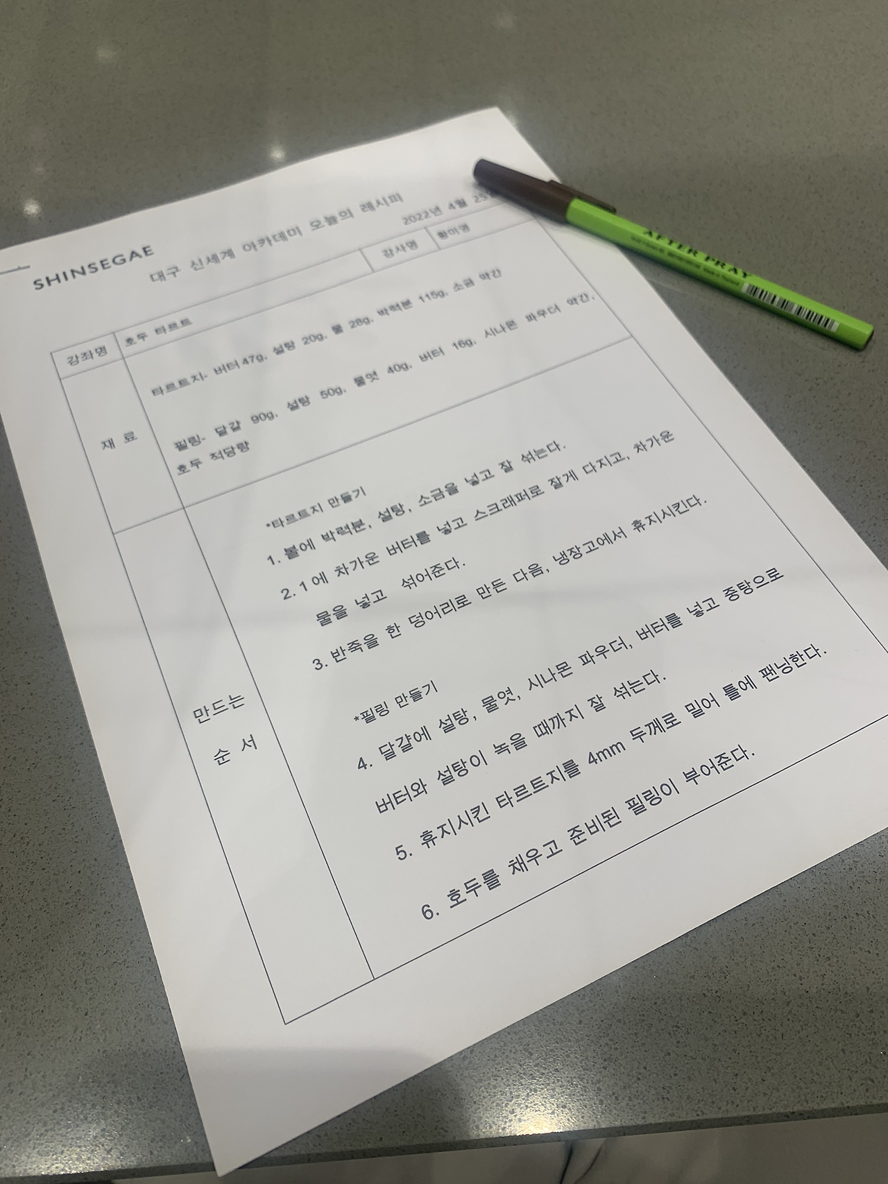 케이크 클래스가 끝나고 이번에는 타르트 클래스에도 등록을 했답니다.