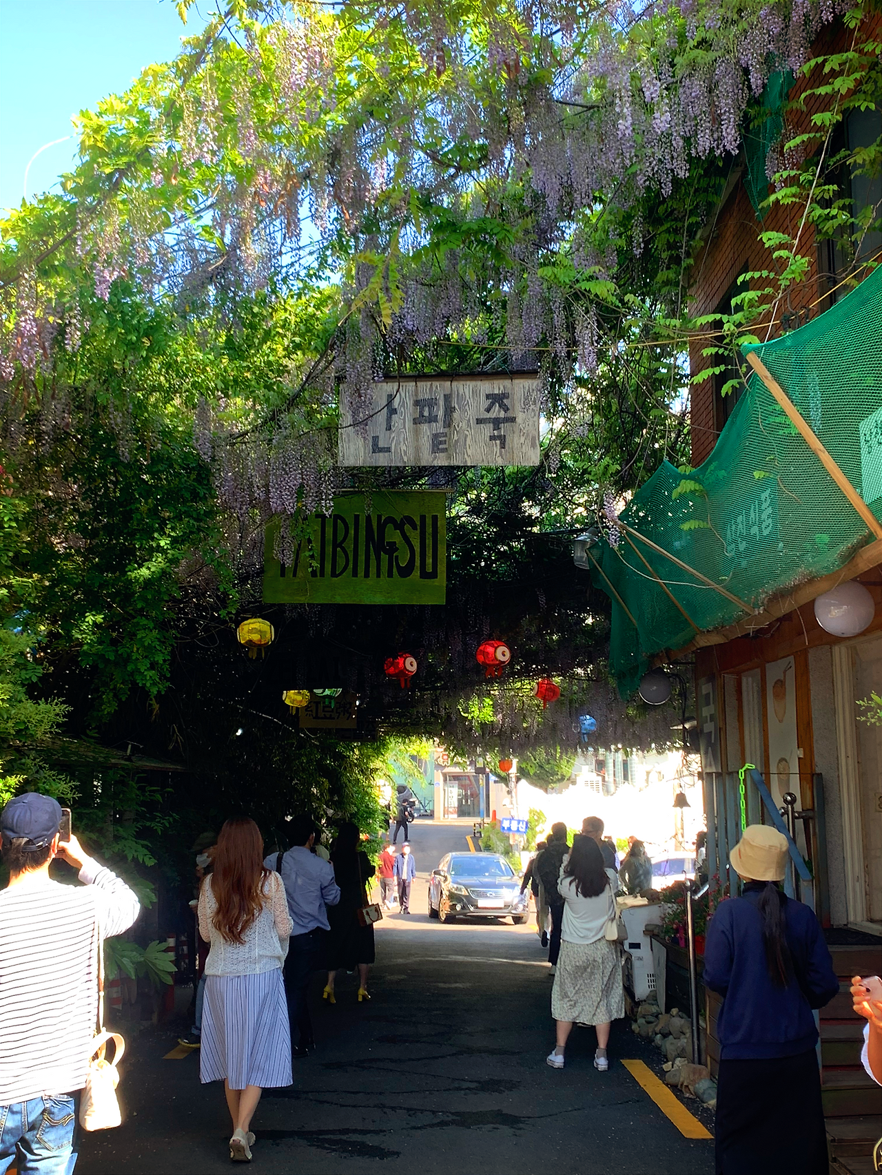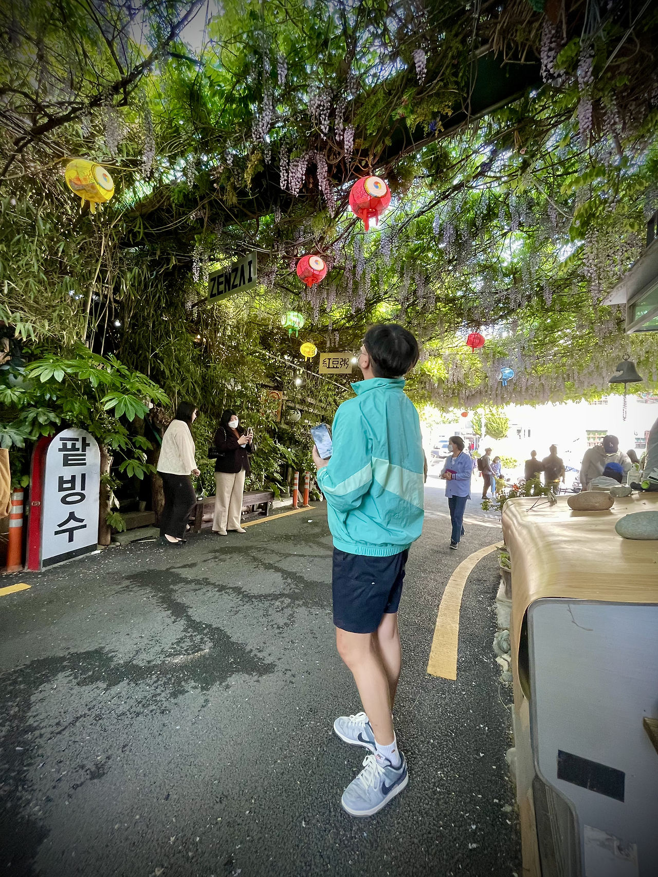 보성녹차 팥빙수 가게 앞이 온통 등나무 꽃으로 분위기가 좋아요.