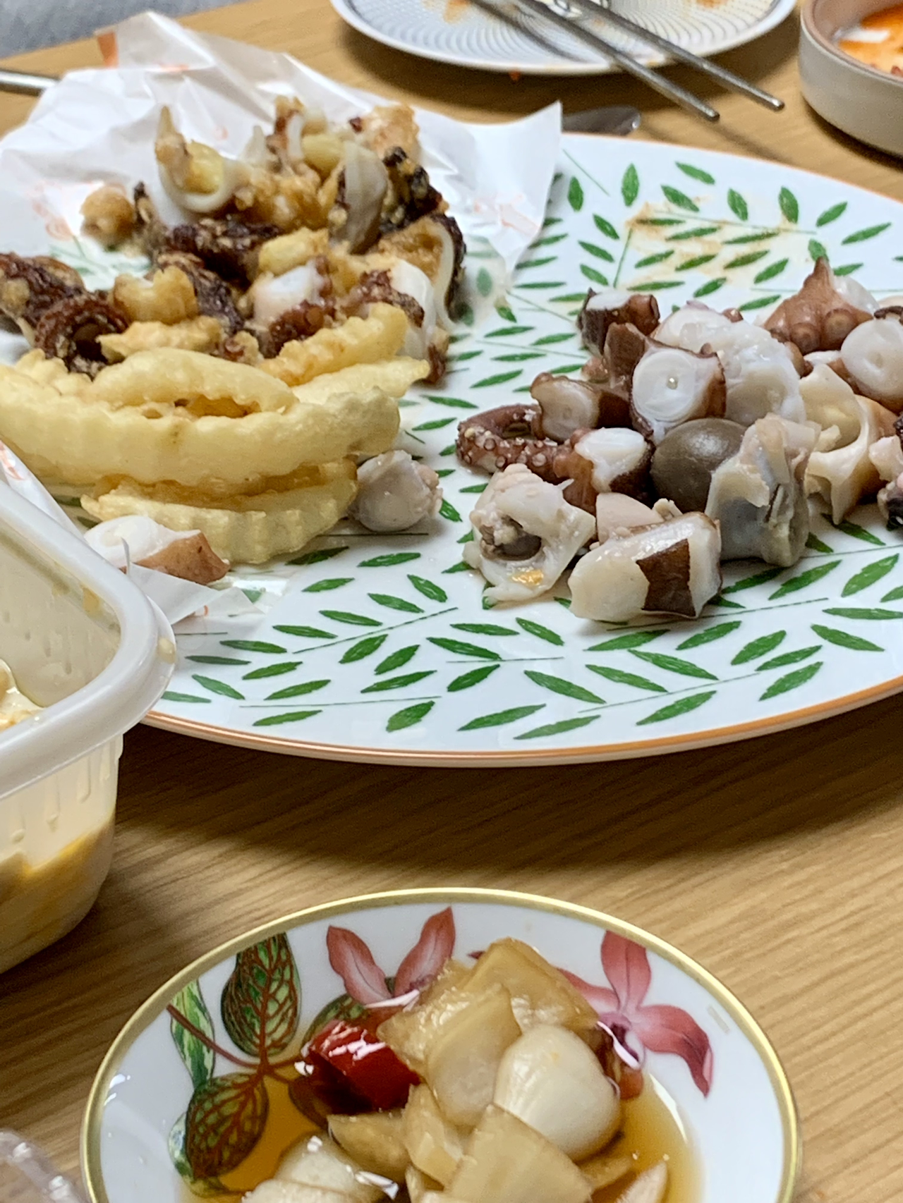 문어숙회와 문어 튀김 반반.. 역시나 튀김은 배달해오면