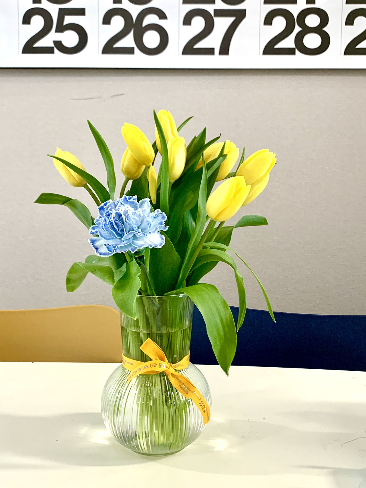 샛노란 튤립이 조화처럼 쨍한 이쁜 컬러에
