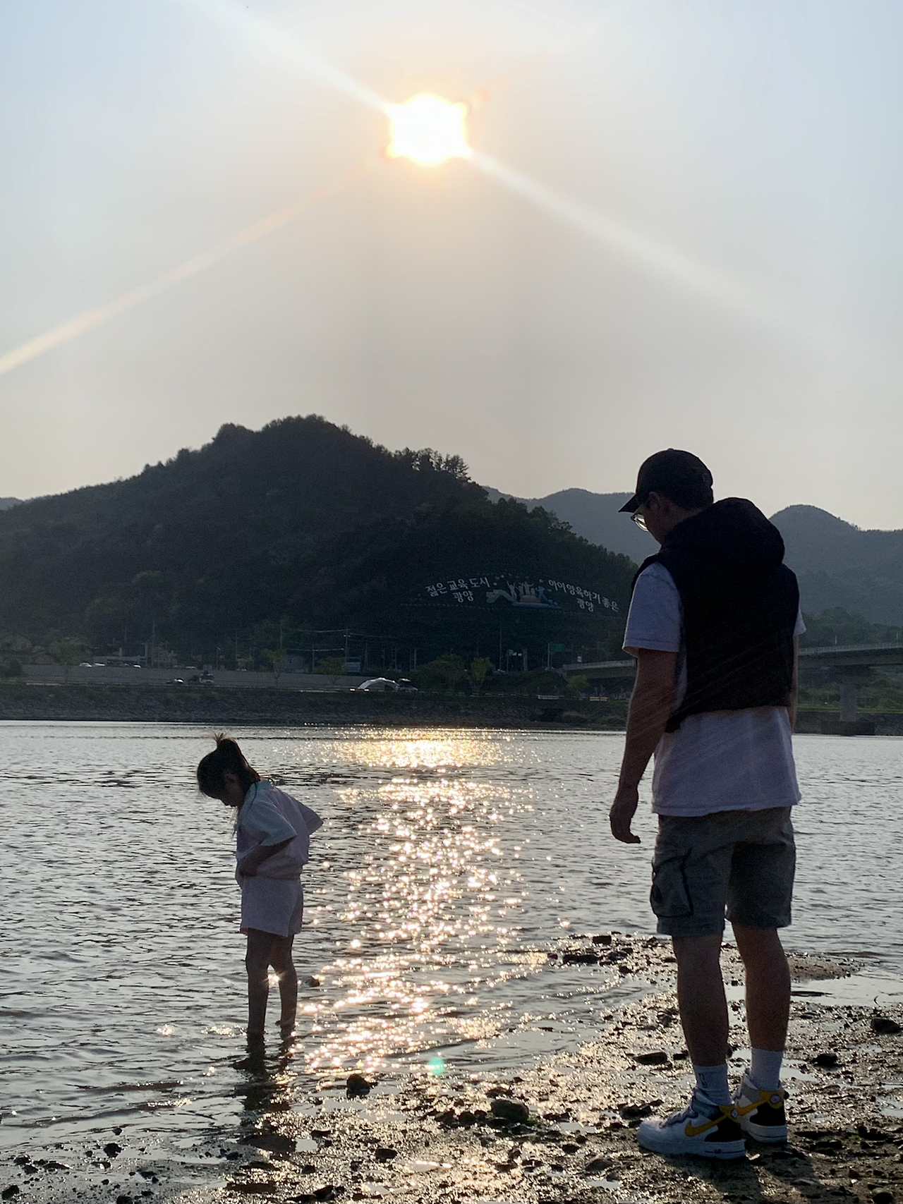 겁 없는 민솔이는 그대로 발을 담가 재첩을 잡아오고