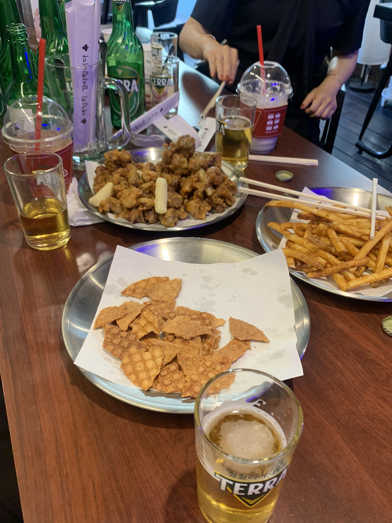 시원한 맥주와 닭똥집튀김 그리고 감튀와 쥐포 사랑해