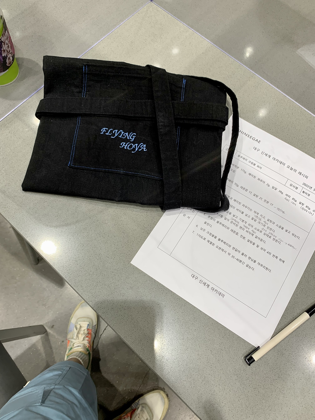 아 미싱을 배우는 후배가 저에게 앞치마를 직접 만들어