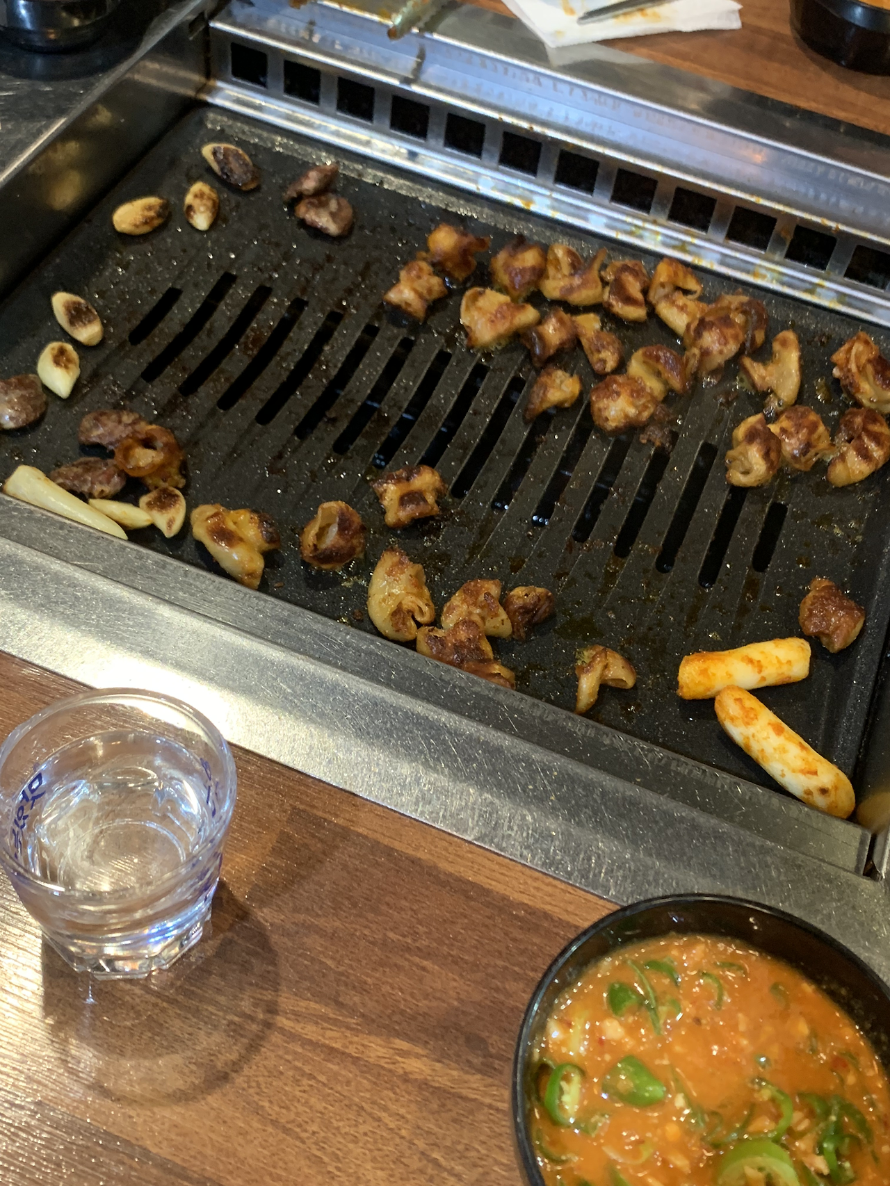 숯의 온도가 높아서 금방 구워지고 막창의 잡내도 없어서