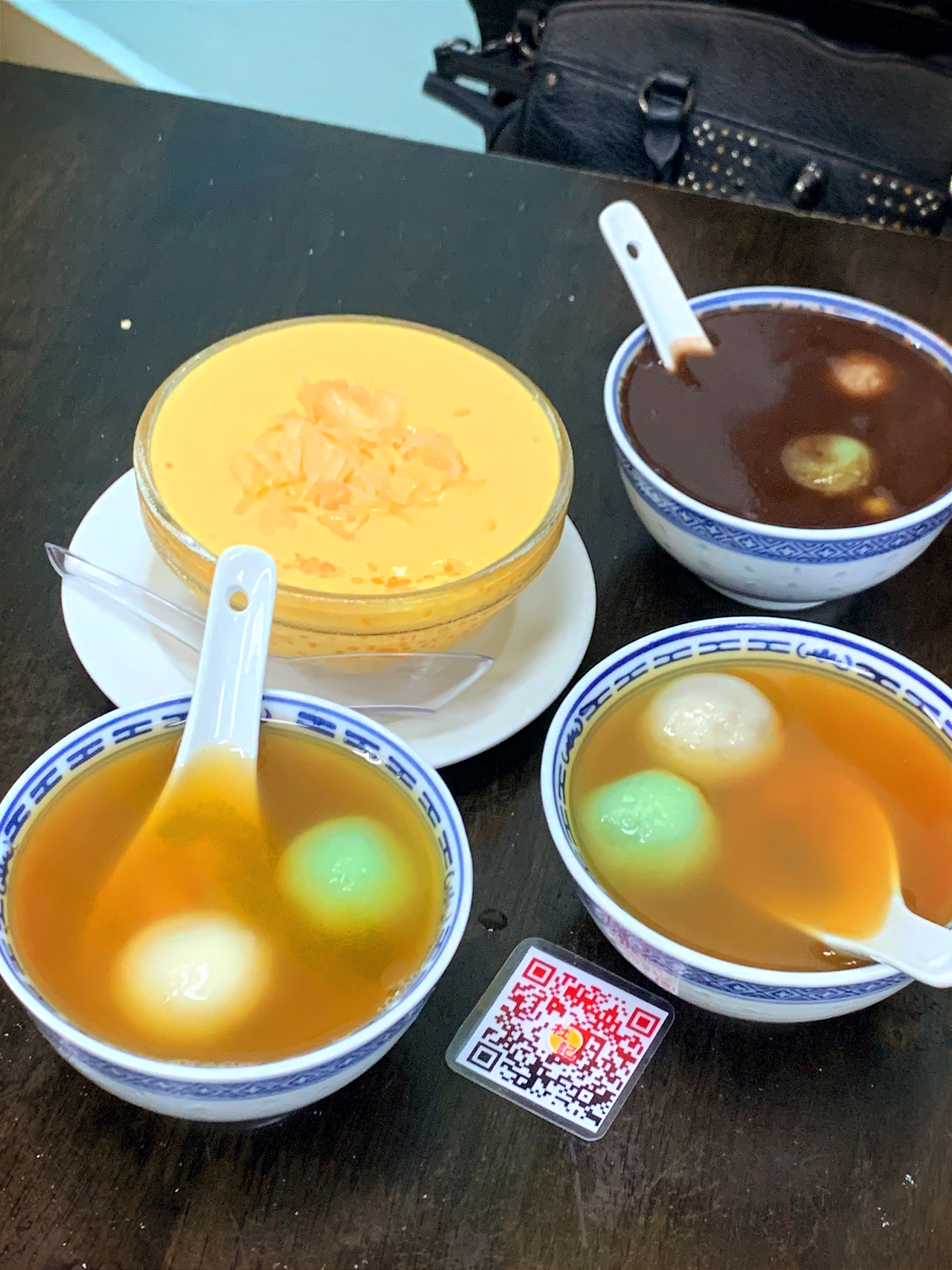 생강차 같은 것에 깨송편을 넣은 디저트 먹으러 왔습니다.