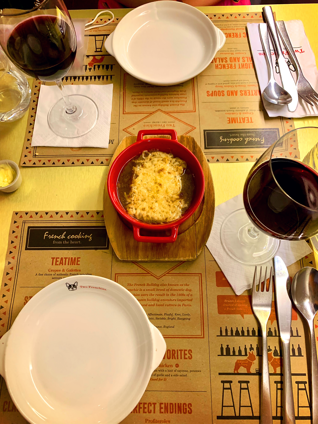 프렌치 레스토랑이니 어니언 슾 주문을 했고