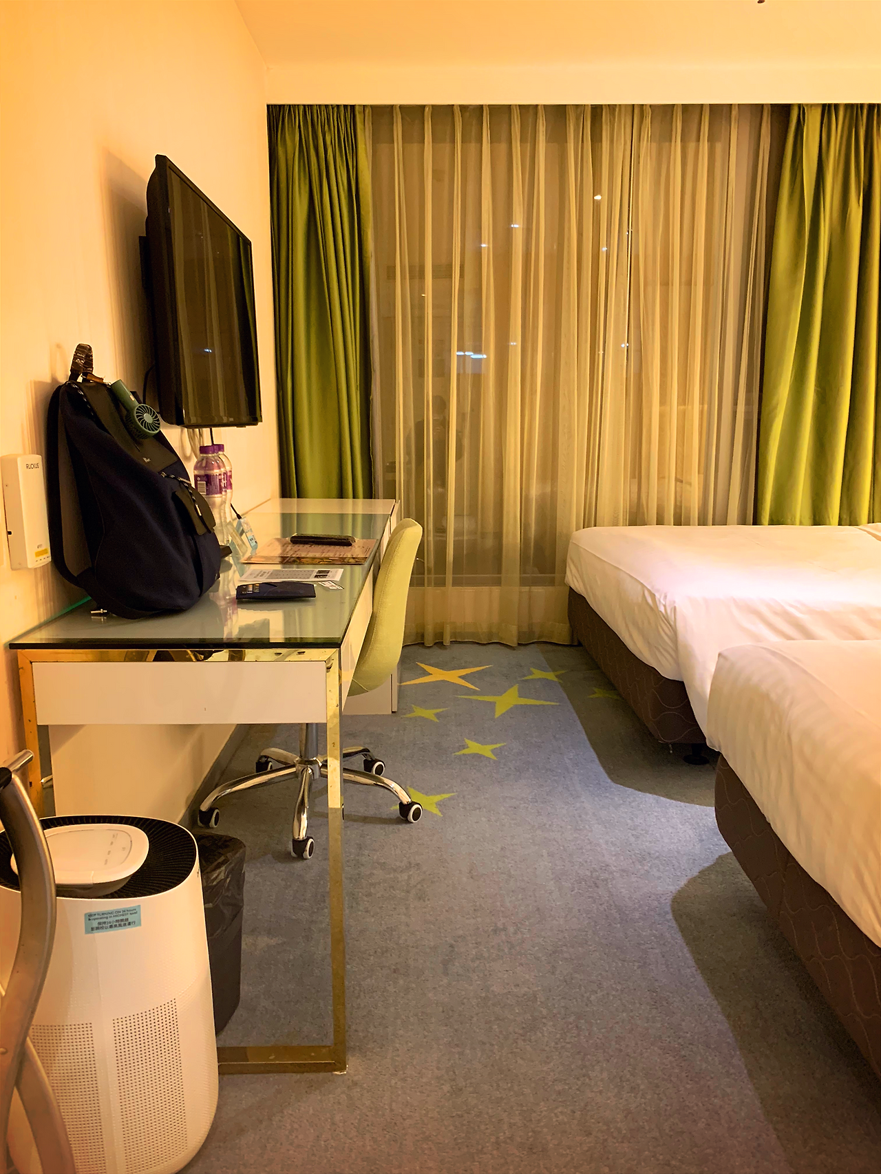 싱글룸으로 예약을 했는데 더 넓은 룸으로 업그레이드를 해주셨습니다. 첫 느낌은 깔끔했고 홍콩이라 역시 눅눅한 느낌이 나더라고요. 습하긴 해서 에어컨을 미리 틀어놓는 센스도 돋보였습니다.