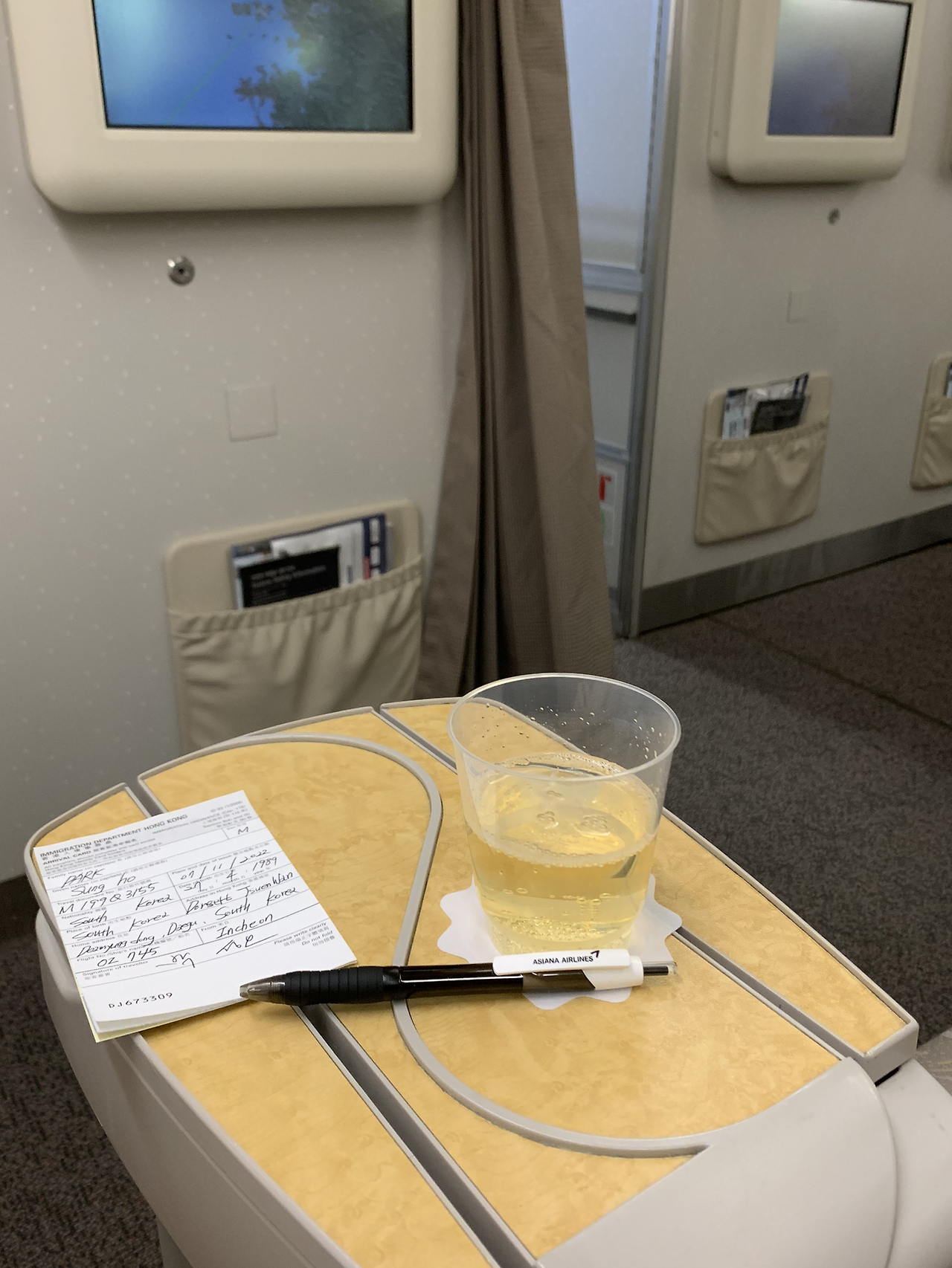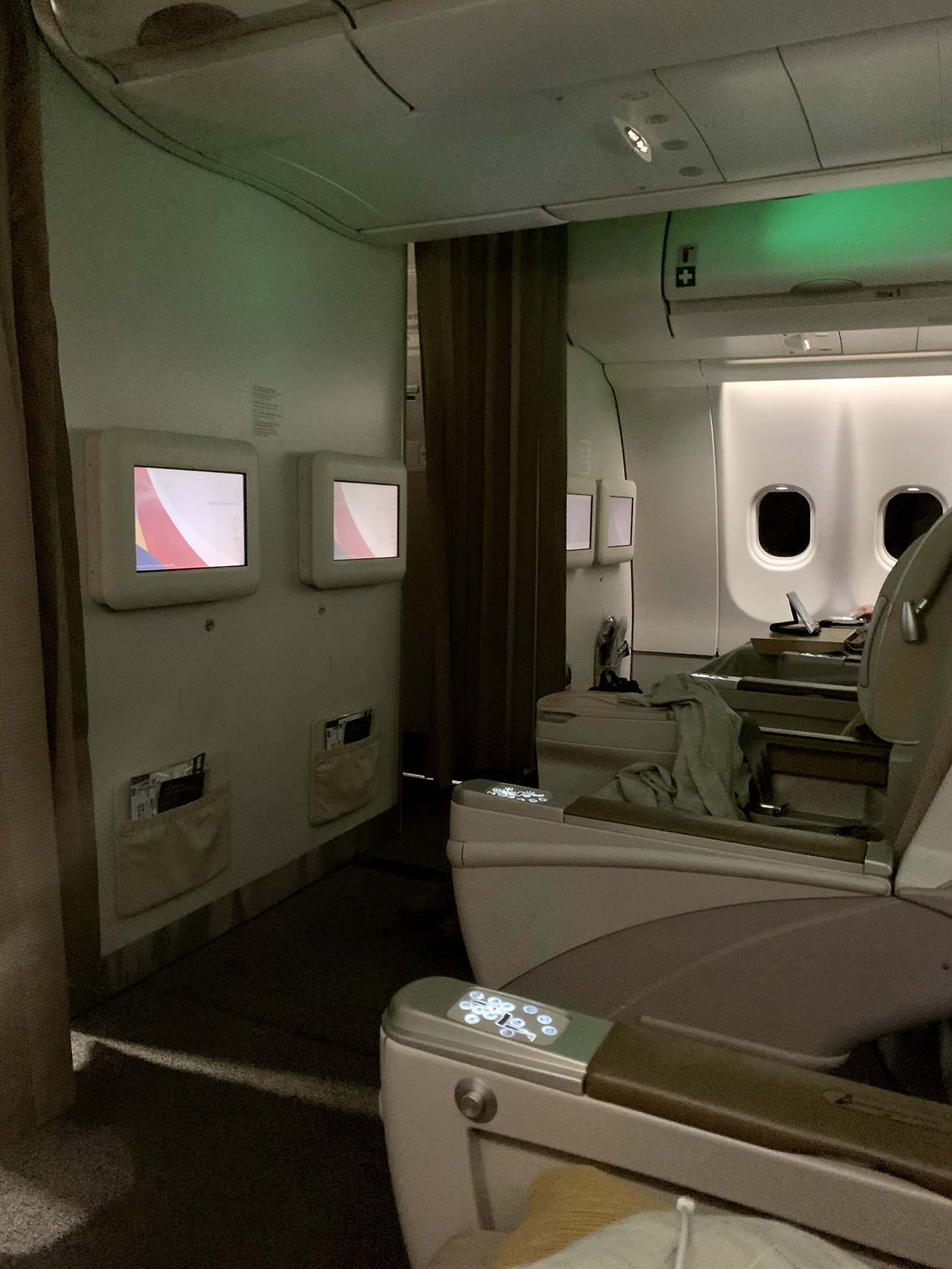 1A좌석에 착석을 했답니다. 체크인 시에 옆자리가 비었는지 물었는데 아직 체크인을 다 진행한 게 아니라 알 수 없다는 답변을 들었는데 다행히도 옆자리는 비었었네요.