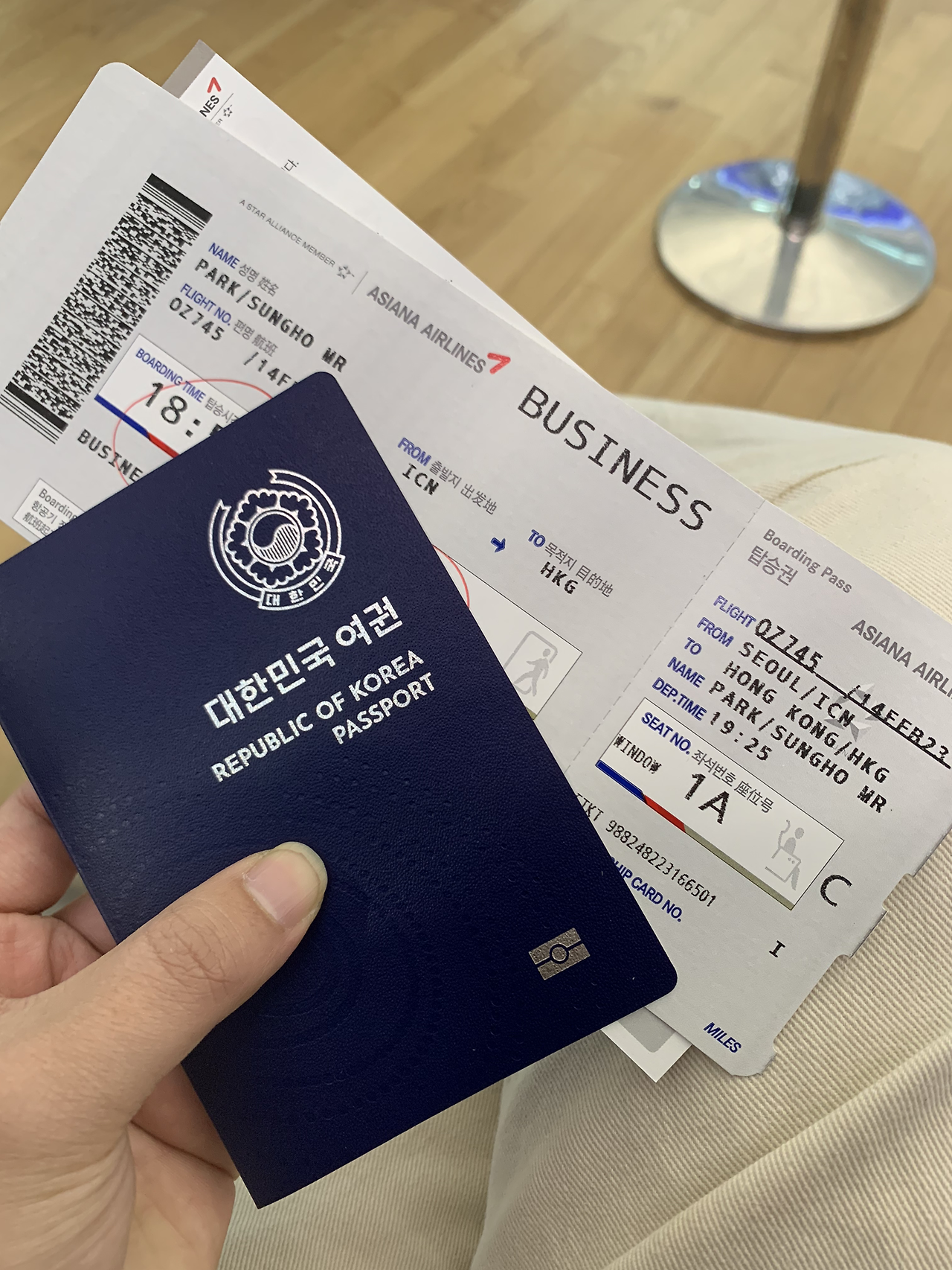 인천에서 홍콩은 아시아나 항공으로 발권했고