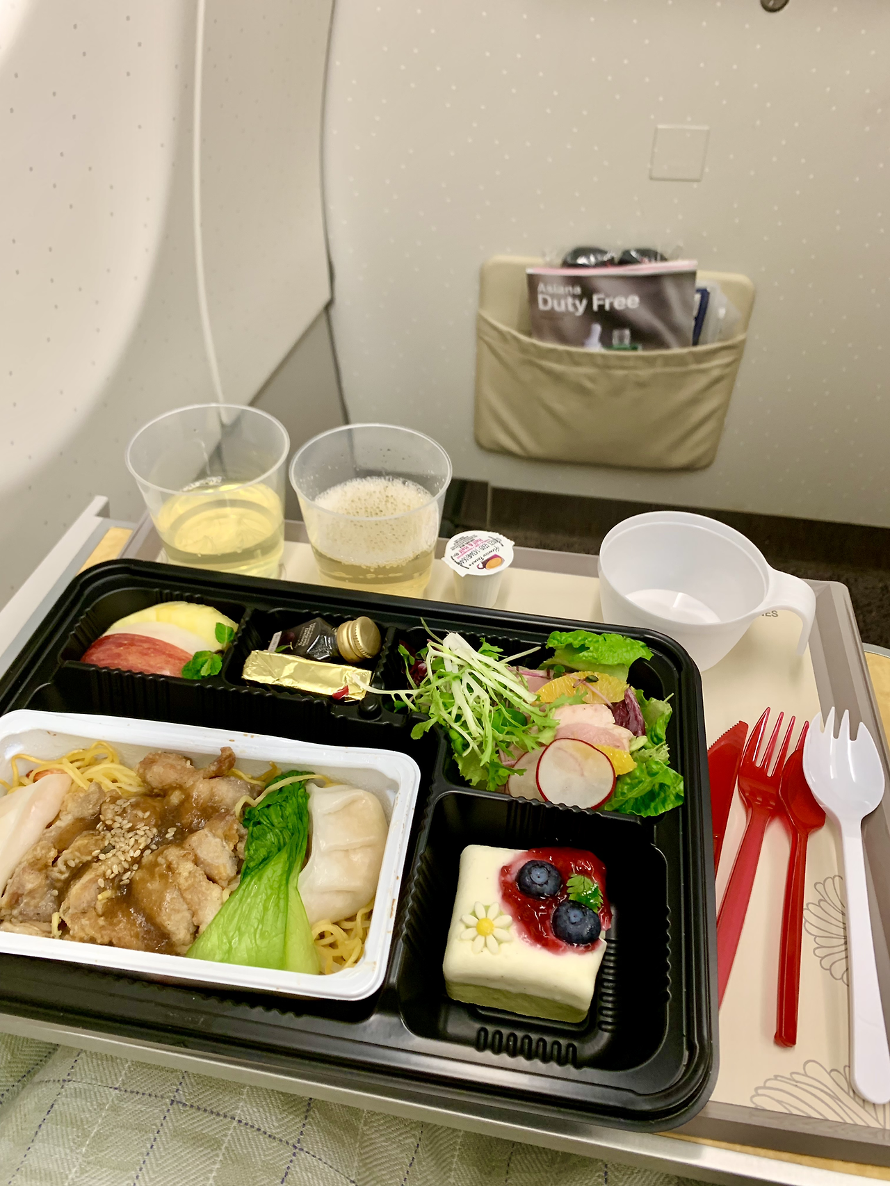 샴페인도 기센 말보로 쇼블도 플라스틱 잔에 제공이 되니 맛이 반감이 되는 느낌이었는데 기내식은 역시 아시아나 항공 디저트로 나온 케이크도 메인도 맛있었답니다.