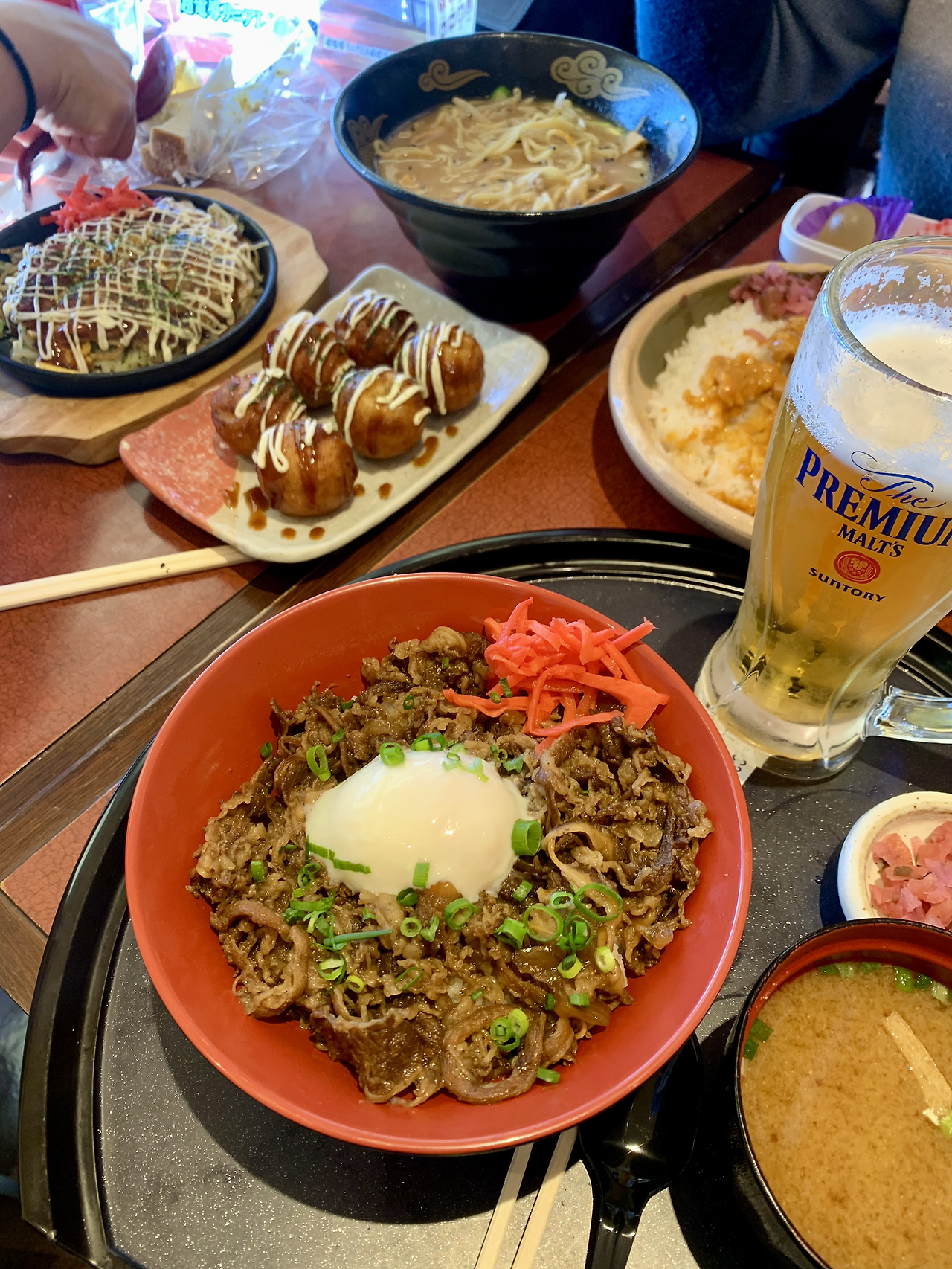 공항에 있는 레스토랑에서 라멘과, 돈카츠카레, 규동,