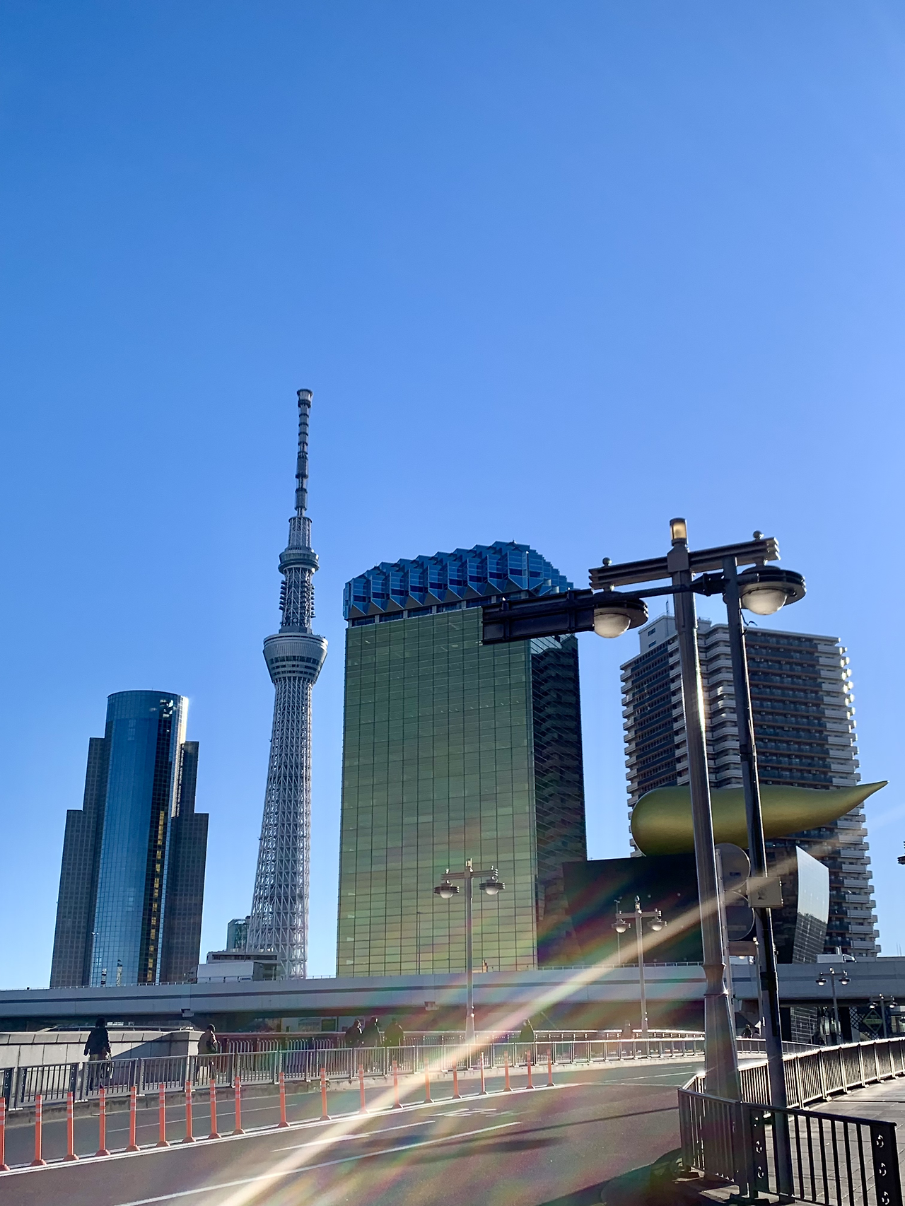 스카이 트리와 아사히 본사가 한눈에 보이는 곳