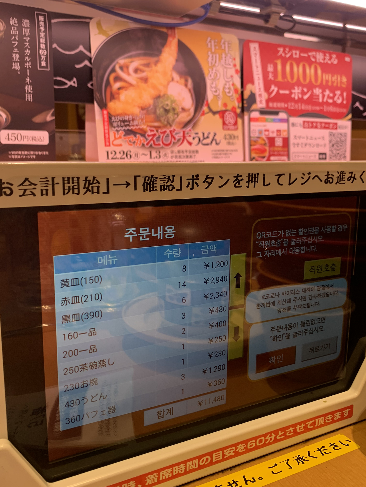 먹자마자 주문을 진행하고 디저트도 있고 우동과 음료도 주문을 신속히 했어요.
