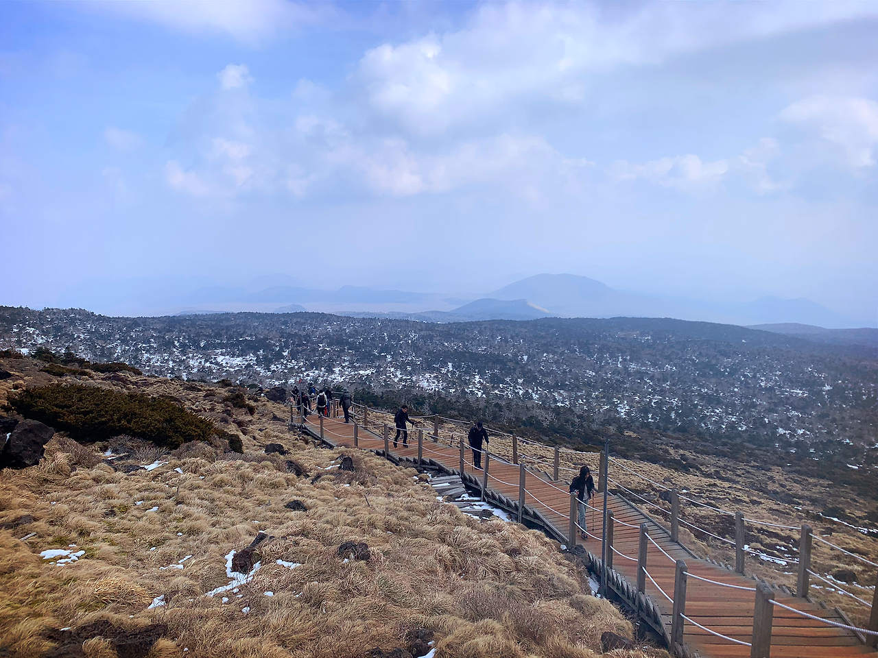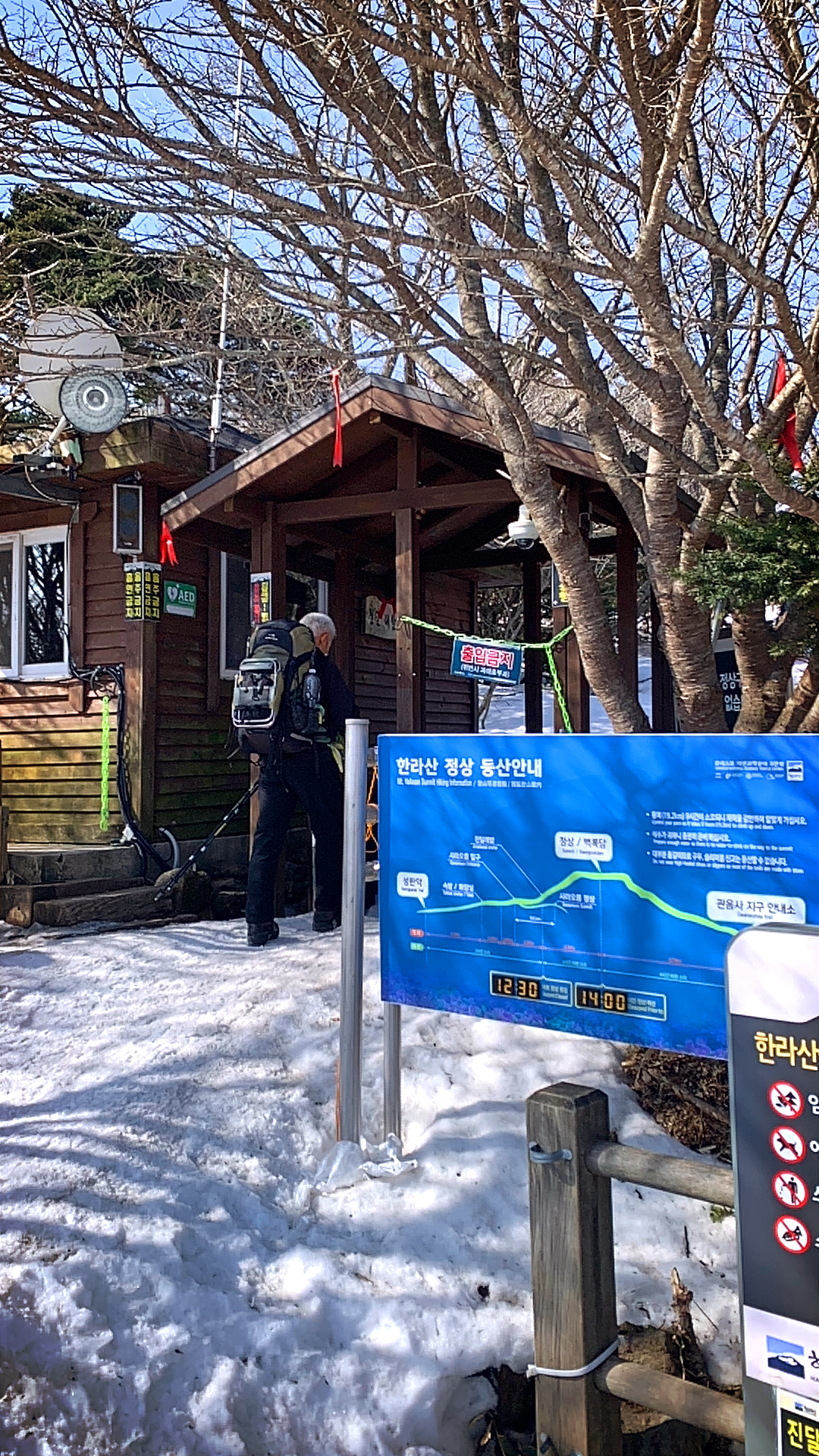3월 5일에 등정을 했는데 눈이 많으니 아이젠은 필수며 등산스틱도 가지고 가면 좋아요. 쓰레기를 담아 올 수 있는 봉투도 준비하시고 저는 지금 3일 동안 근육통에 시달리고 있어요. 하산을 하시고 근육이완제를 먹는 거 추천해요.