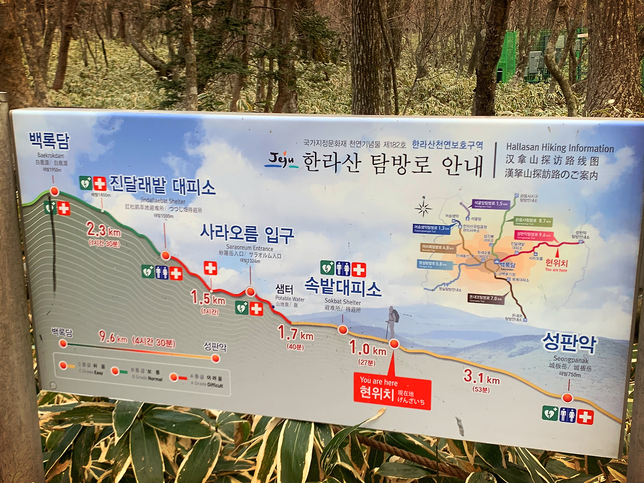 45분 정도 걸으니 한라산 탐방로 안내판이 나왔어요.