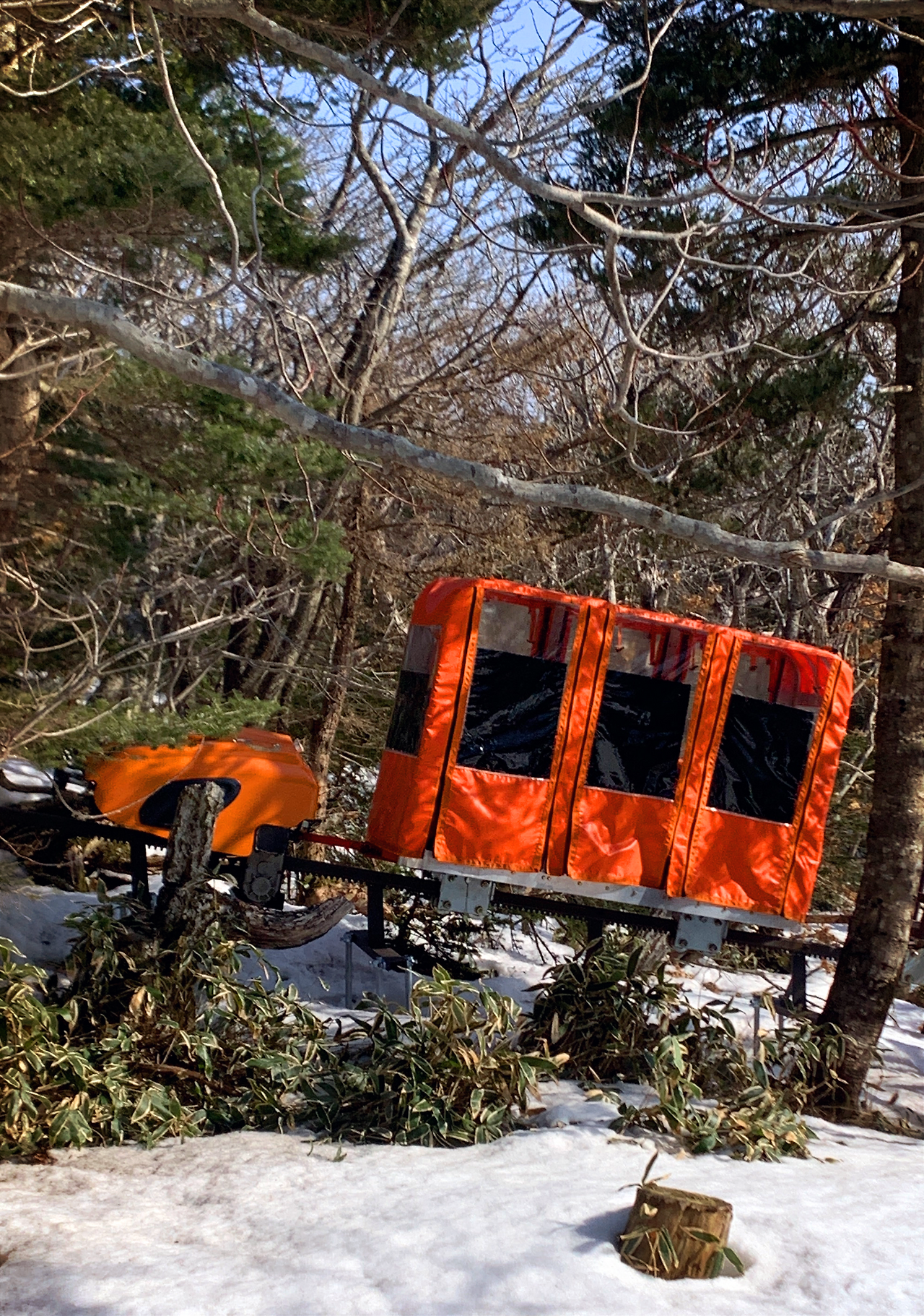 눈때문에 눈이 부시고 찬바람에 콧물이 줄줄 흐르고 힘들어서 눈물이 날듯 말 듯 했는데 유유히 지나가는 화물을 옮기는 모노레일에 저도 탑승하고 싶었습니다.