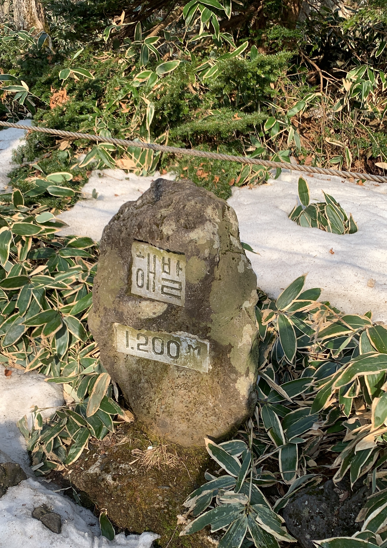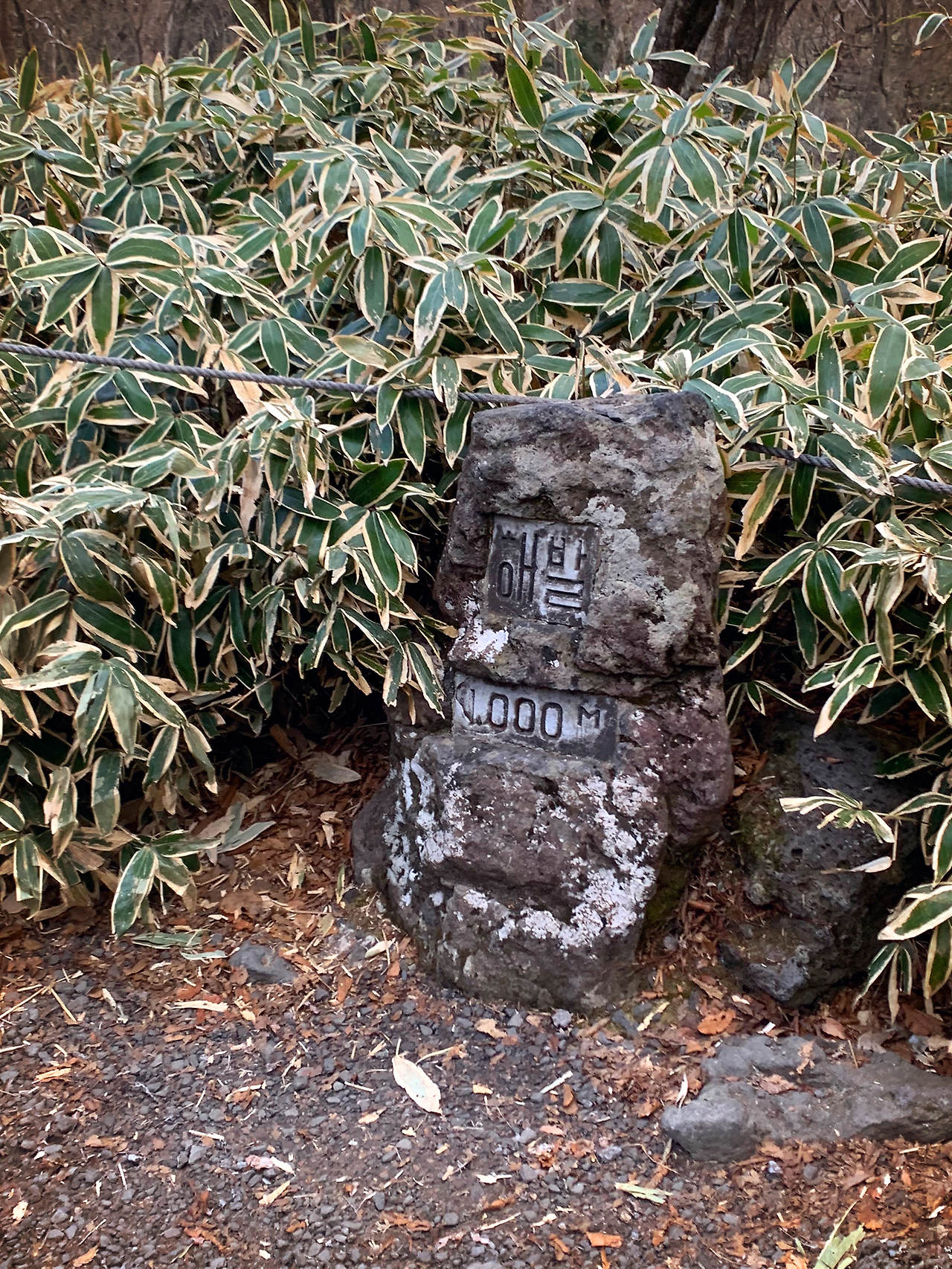 성판악 입구가 해발 약 800m였으니 1150m를 올라야 백록담이 나오겠네요. 어느 정도 걸으니 해발 1000m입니다.
