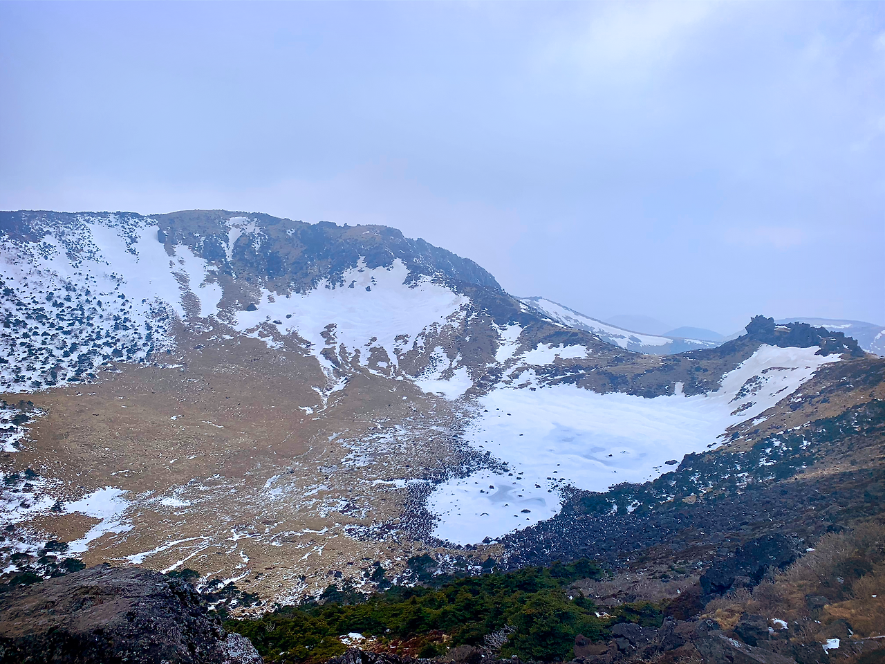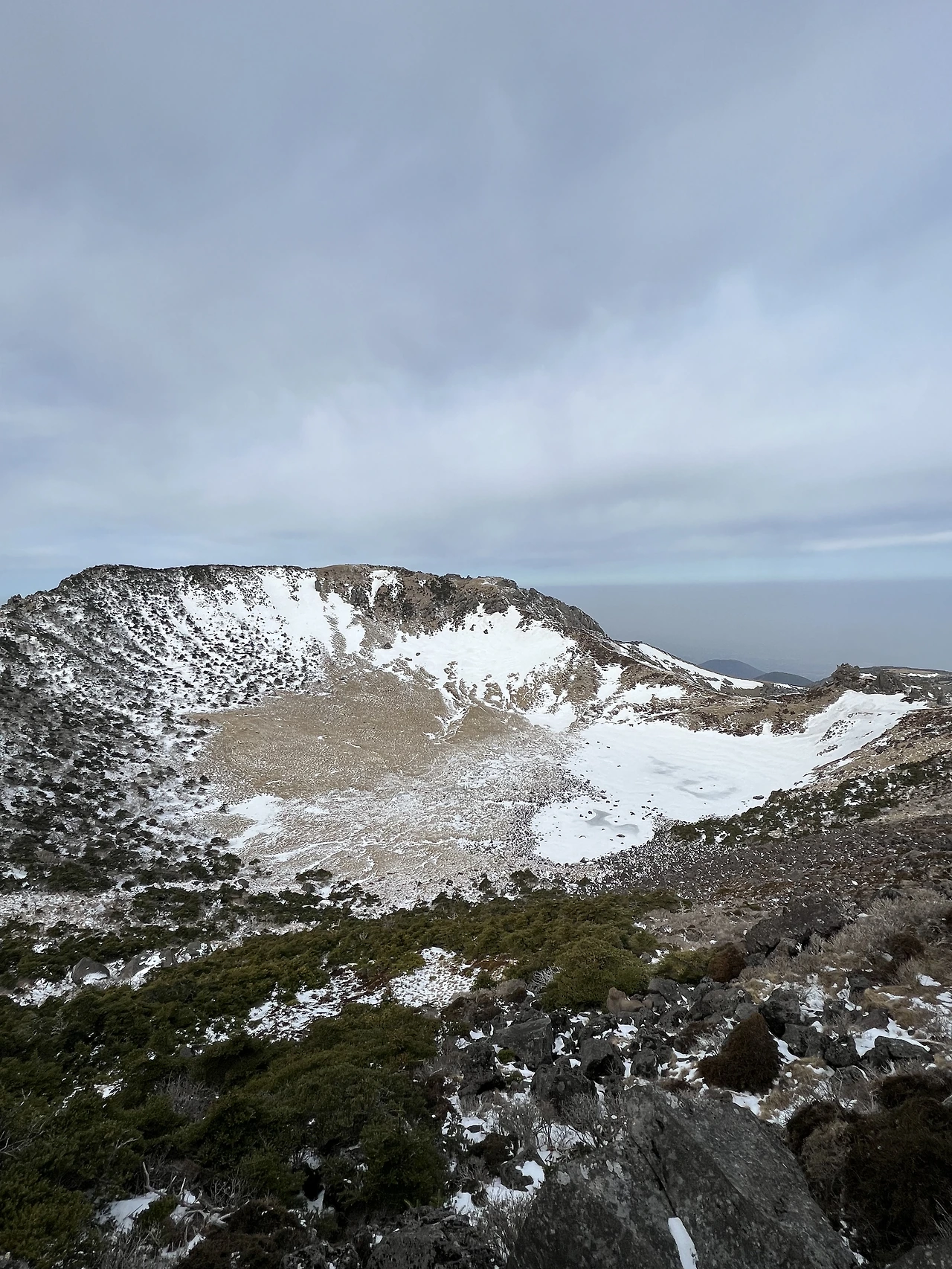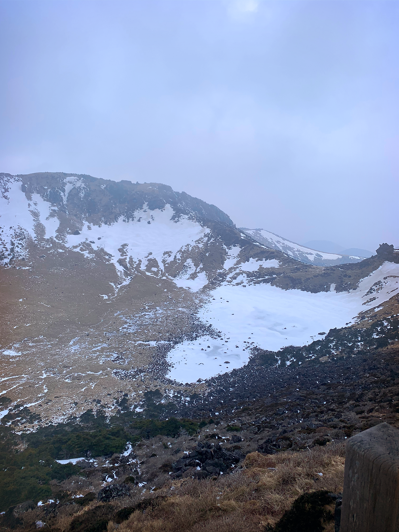 갑자기 구름이 몰려와서 백록담이 보이지 않을까 조마조마했는데 다행히 백록담을 볼 수 있었습니다.