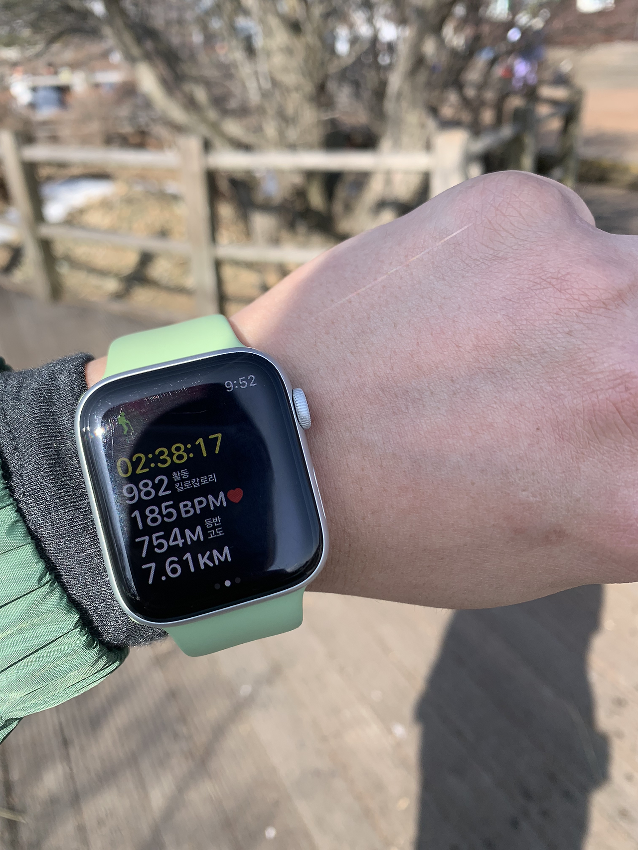 눈이 쌓여 얼었고 어느 구산은 해를 받아 녹아 있는 구간이 있지만 정말 미끄러웠어요.