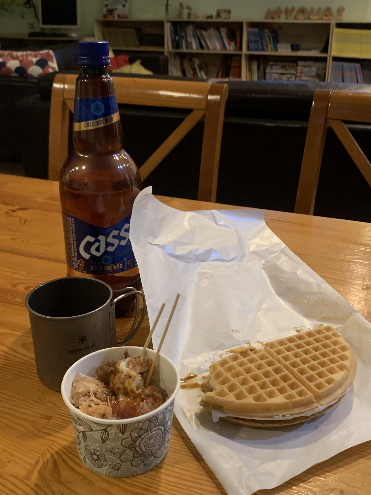 와플대학은 처음 본 곳이라 생크림에 시럽이 들어간 와플과 타코야키 트럭이 있어서 구매했는데 3알에 3천 원은 너무 비싸네요.