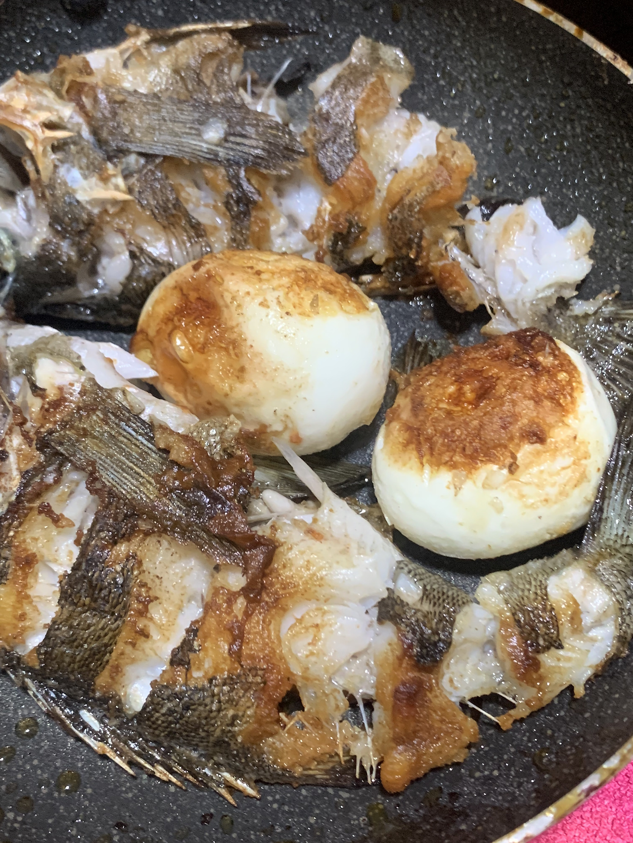 삶은 달걀을 구웠는데 이게 또 별미더라고요.