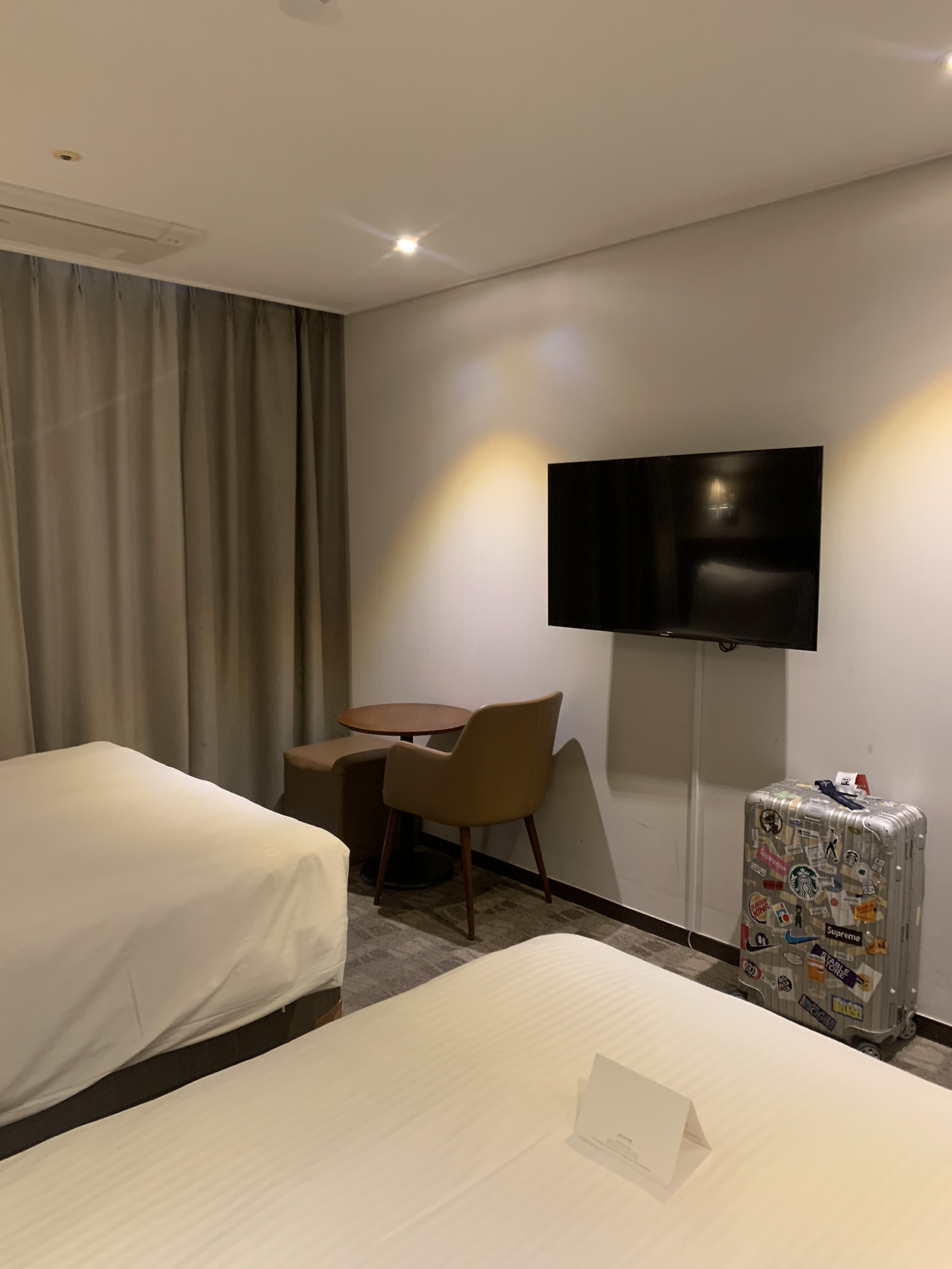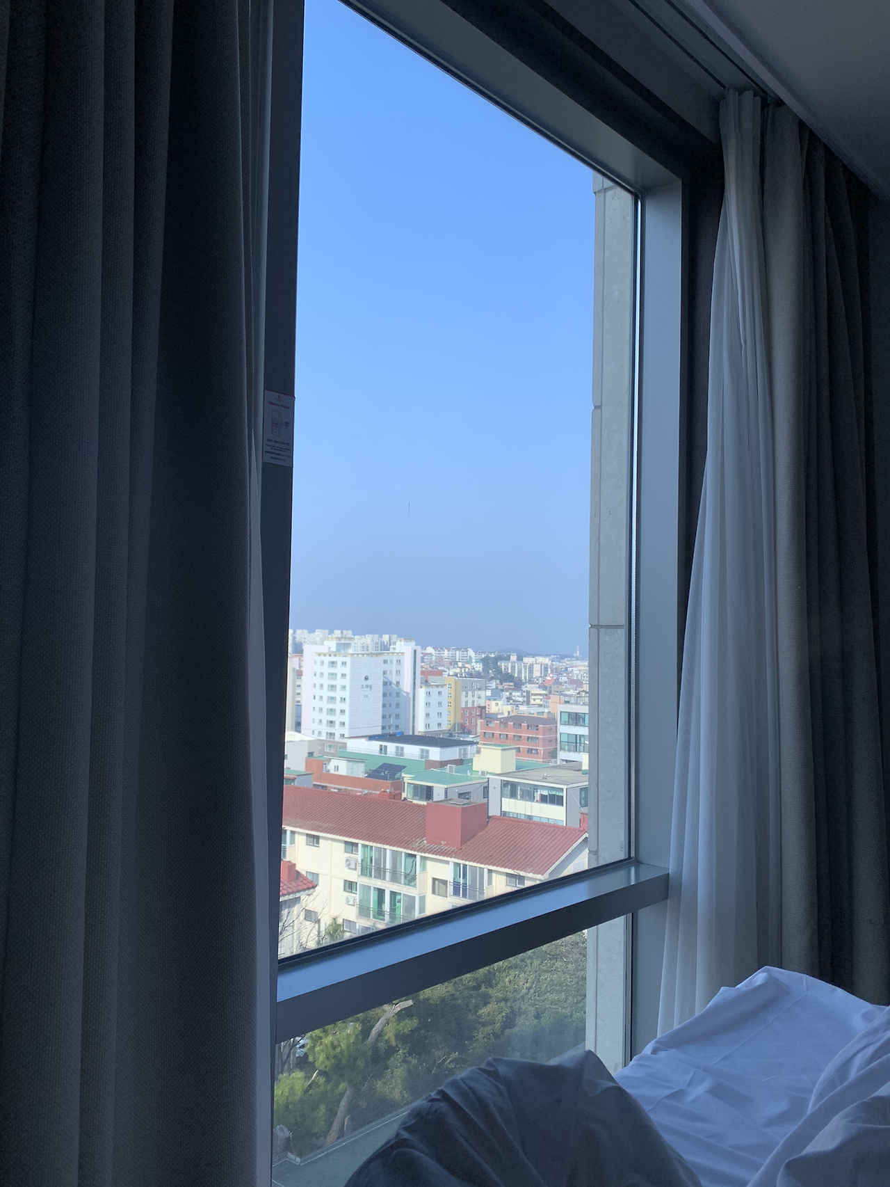 스탠다드 더블룸으로 예약을 했는데 업그레이드를 해주셨습니다. 후기를 보니 스탠다드 룸과 디럭스룸은 객실의 크기는 같은데 뷰가 달라요. 당황스럽게 뷰가 없고 밖이 보이지 않게 시트지로 붙여놓은 방이 많더라고요.