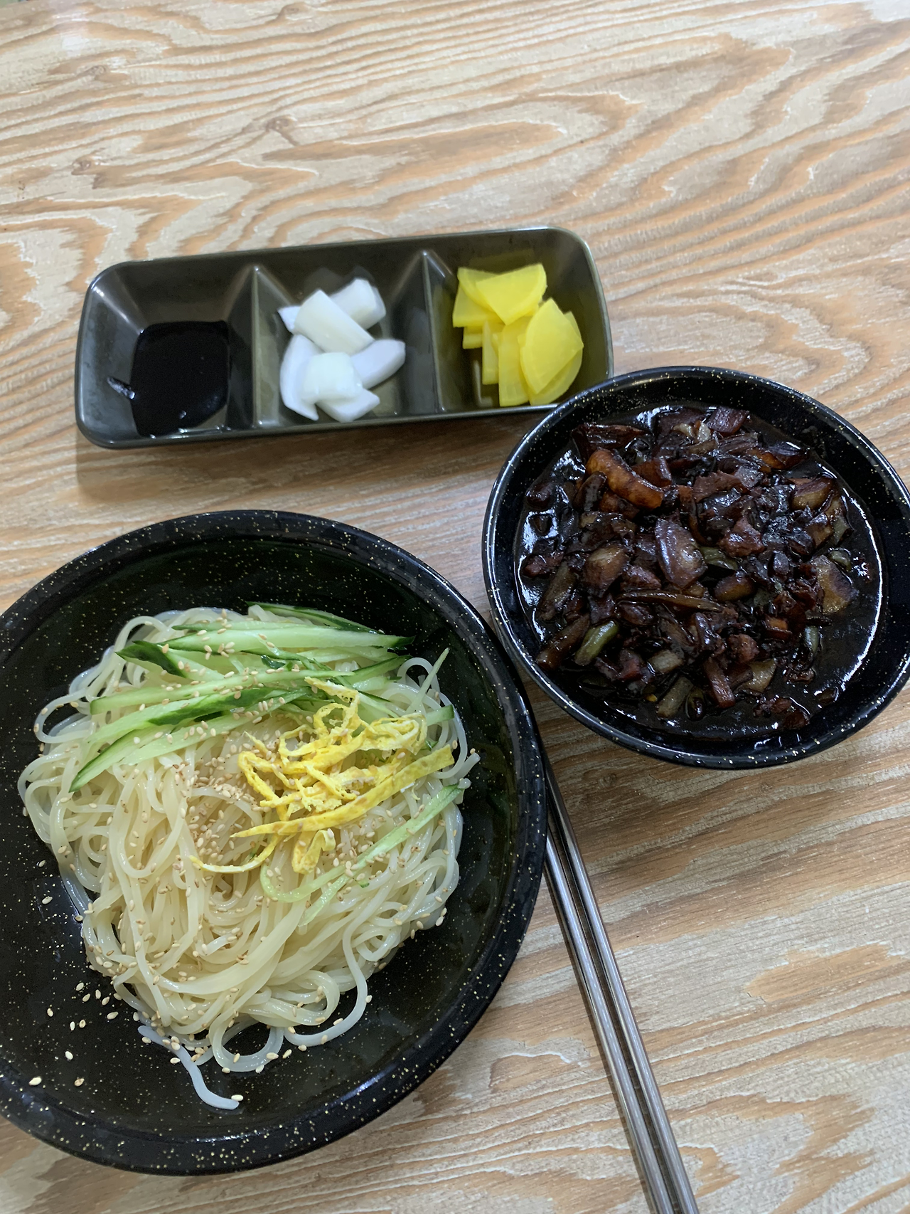 호텔조식이 가격도 괜찮아서 해장국이랑 뭐 먹을지 고민했는데 일어나 보니 11시라니 한라산의 여파로 인해서 고단했나 보다. 씻고 무얼 먹을까 고민하다가 오랜만에 찾은 송림반점입니다. 이곳은 간자장과 볶음밥 그리고 탕수육이 맛있는데 혼자라 간자장 주문. 오징어와 고기가 듬뿍 들어가 있어요. 달걀프라이가 아니라 조금 아쉽지만 맛있게 한 그릇 먹고 갑니다.