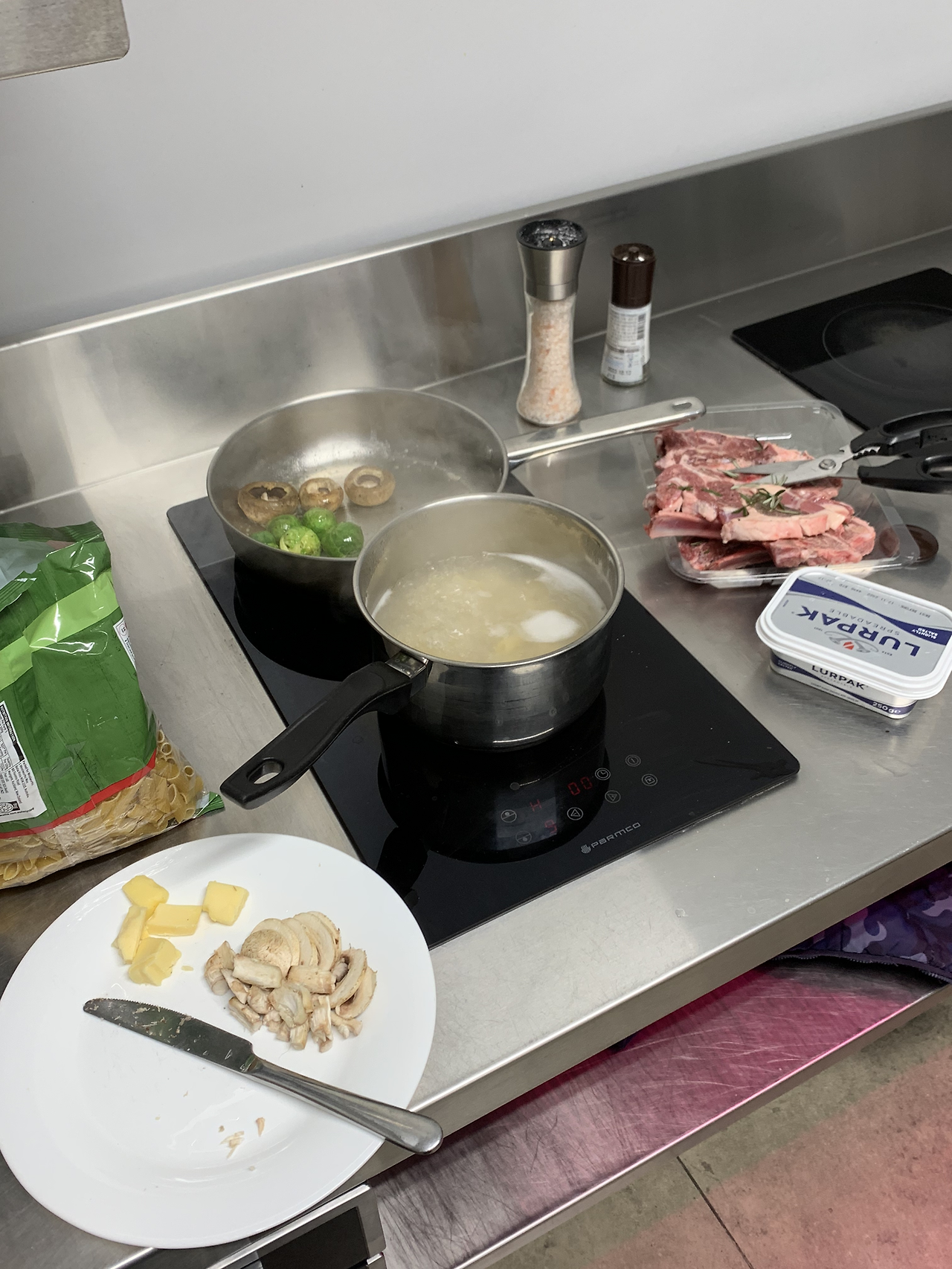 간단히 파스타와 양고기 구웠답니다. 방울양배추도 굽고 버섯도 구매해서 구웠어요. 야채섭취가 필요하다 필요해.