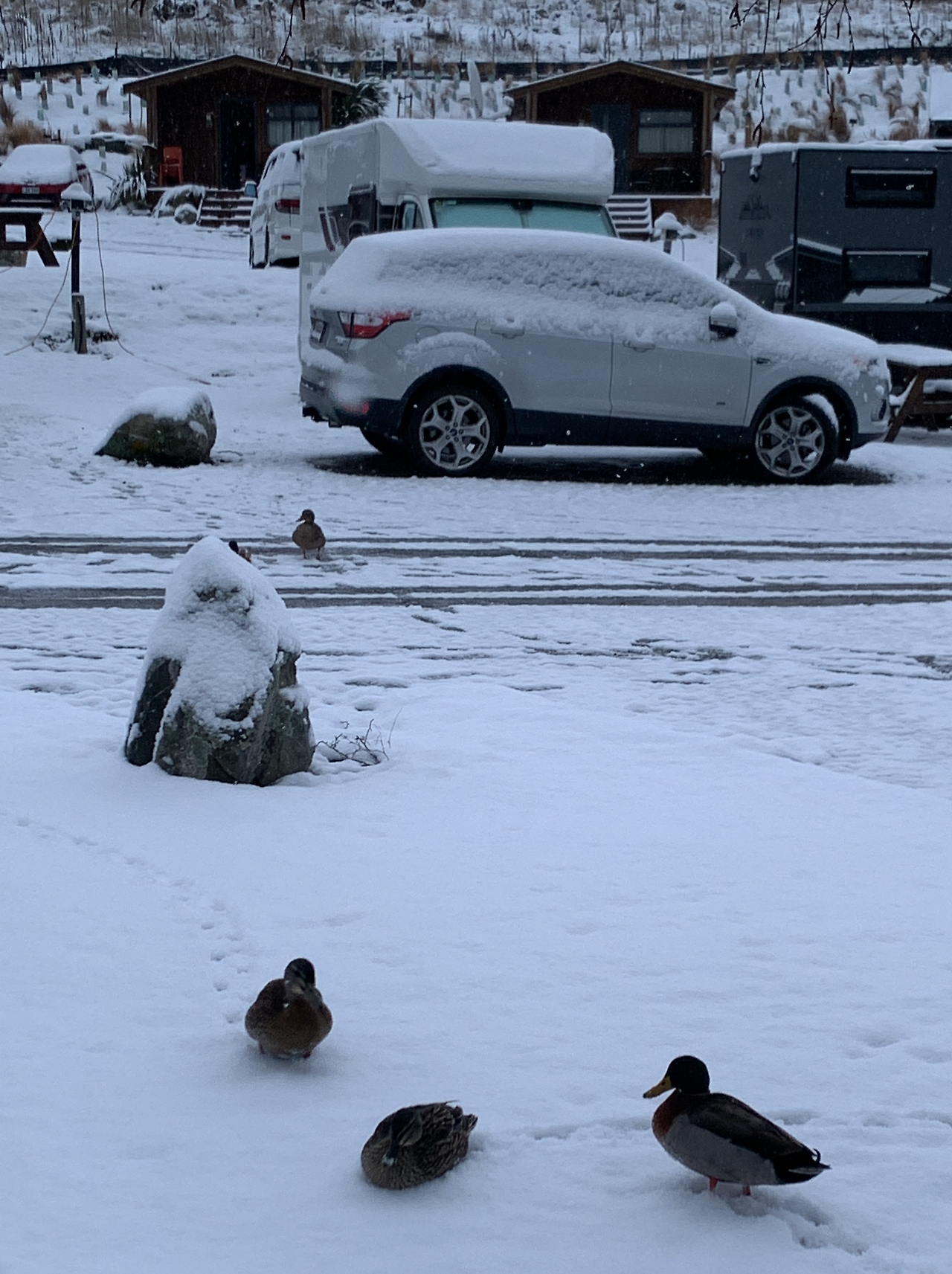 차들도 얼어서 이동조차 힘든데 오리들은 뒤뚱뒤뚱 귀엽