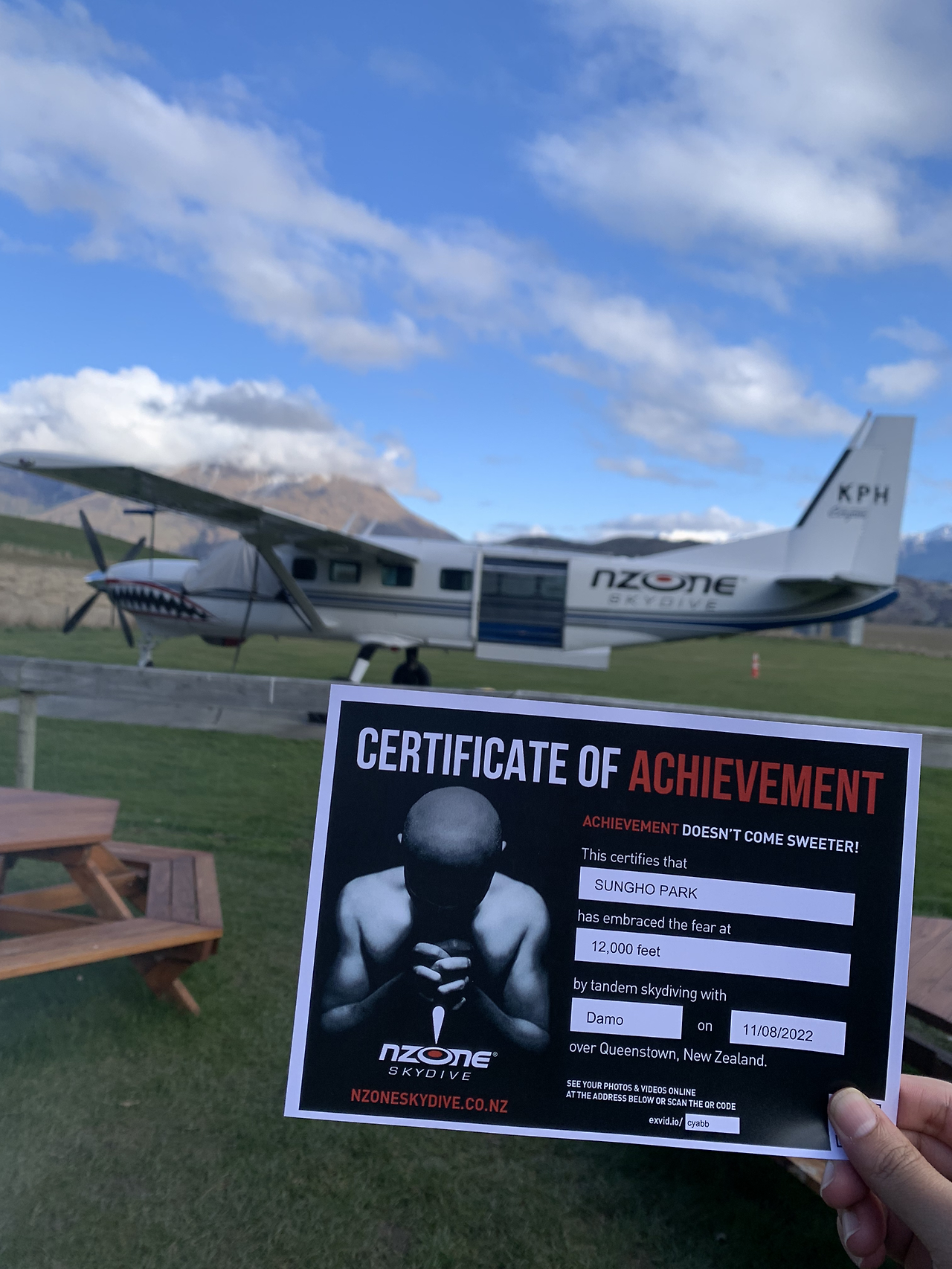 멋지게 뛰어내렸어요. 정말 하늘에서 보는 퀸스타운의 모습 그리고 설산과 호수가 절경이었답니다.