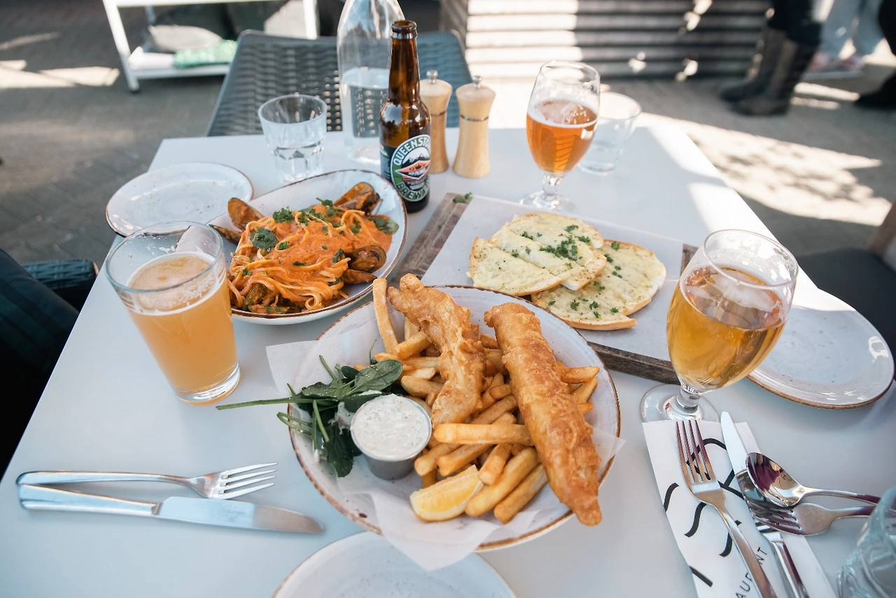 피시 앤 칩스와 그린홍합이 들어간 파스타를 주문