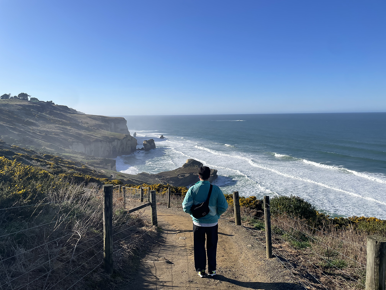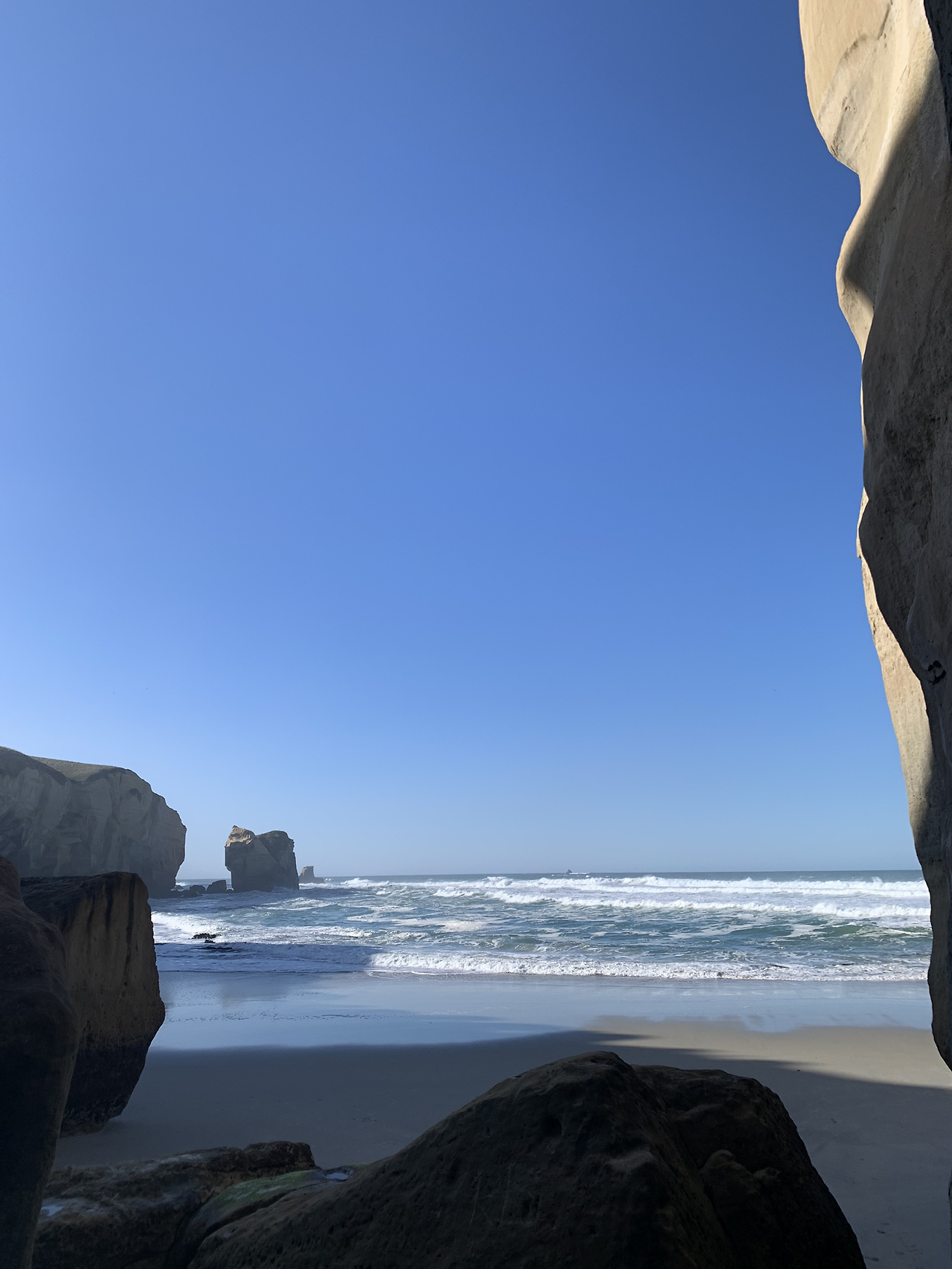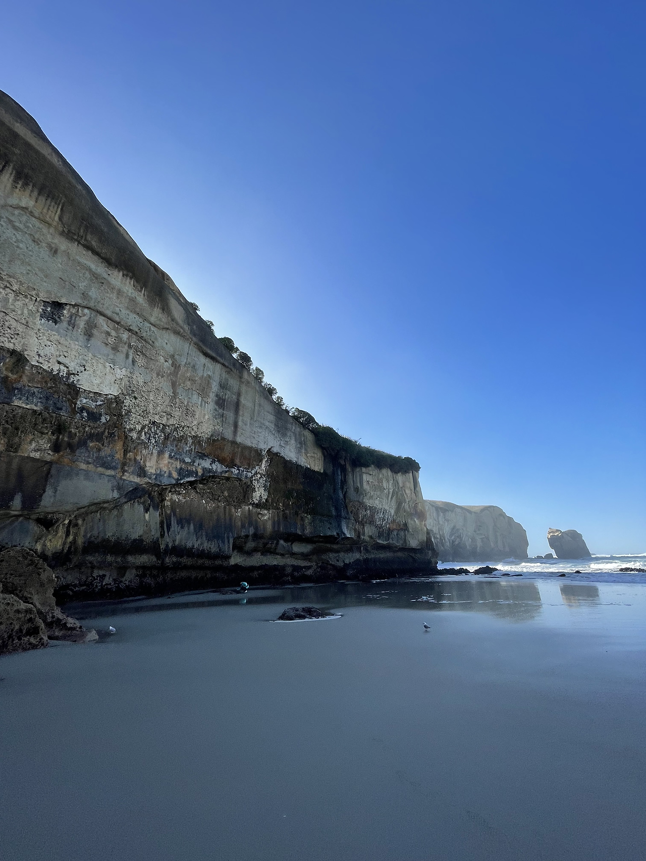 물이 빠지는 시기라 걸을 수 있었는데 바다에 손 한 번 담그려다가 파도에 무릎까지 다 젖어버렸지만 시원했고 언제 또 뉴질랜드의 겨울바다에 들어가겠나며, 더니든에서의 시간을 오롯이 즐기고 싶었어요.
