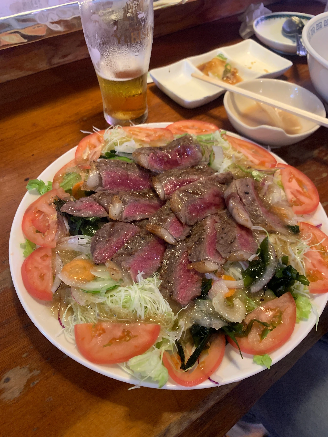 생맥과 하이볼 주문하고 나가사끼 짬뽕과 스테이크 주문