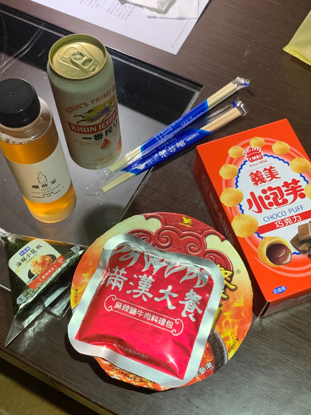 맛있는 홈런볼 같은 과자에 캔맥주까지 먹고 잤아요.